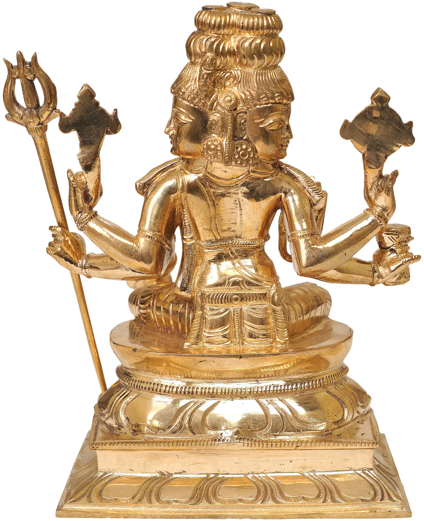 This exquisite bronze statue captures the essence of the Trimurti, the supreme trinity of Hindu deities: Brahma, Vishnu, and Mahesh (Shiva). These three principal deities represent the cyclical nature of existence – creation, preservation, and destruction. Their harmonious presence signifies the divine forces that govern the universe, a concept central to Hindu philosophy and spirituality. Each face and each of the many arms of this sculpture convey a profound theological significance, inviting contemplation and devotion. The meticulous craftsmanship, originating from Swamimalai, a renowned center for traditional South Indian bronze casting, imbues this piece with an unparalleled aura of authenticity and artistic merit. The technique, often passed down through generations, involves intricate lost-wax casting, resulting in the finely detailed and lifelike representation of these divine beings. The rich patina of the bronze enhances the sculpted features, making it a truly captivating centerpiece for any sacred space or a cherished addition to a discerning collector's ensemble. ––––––––––