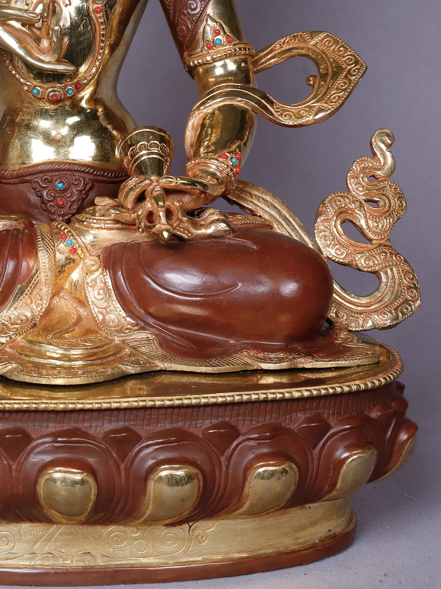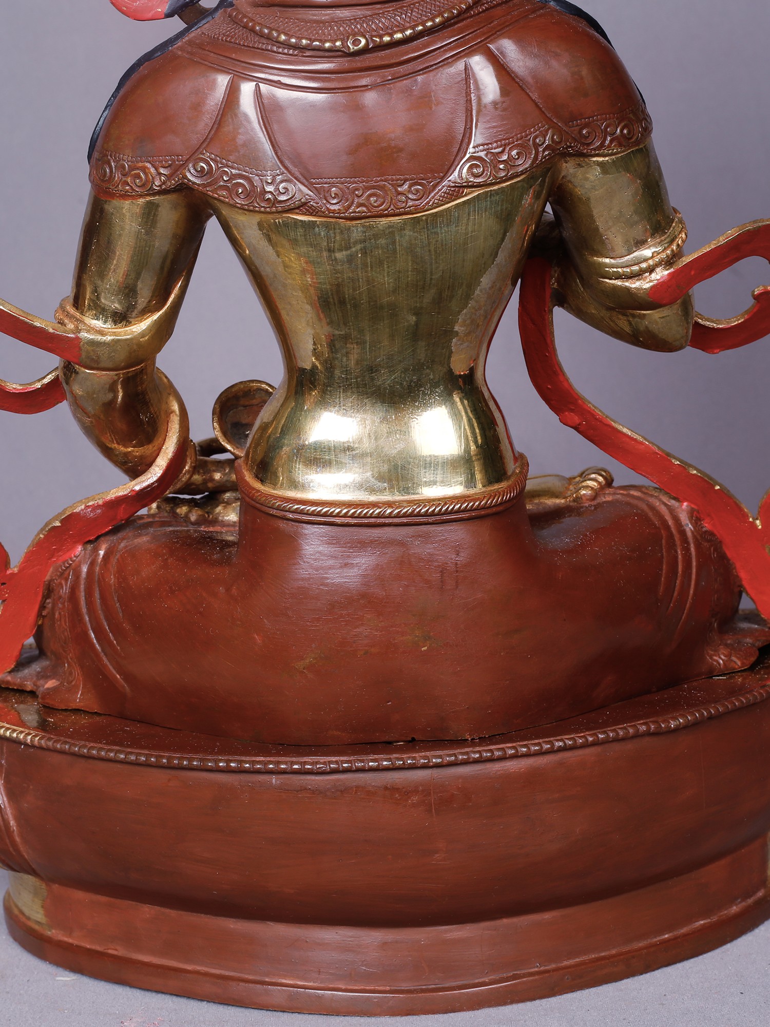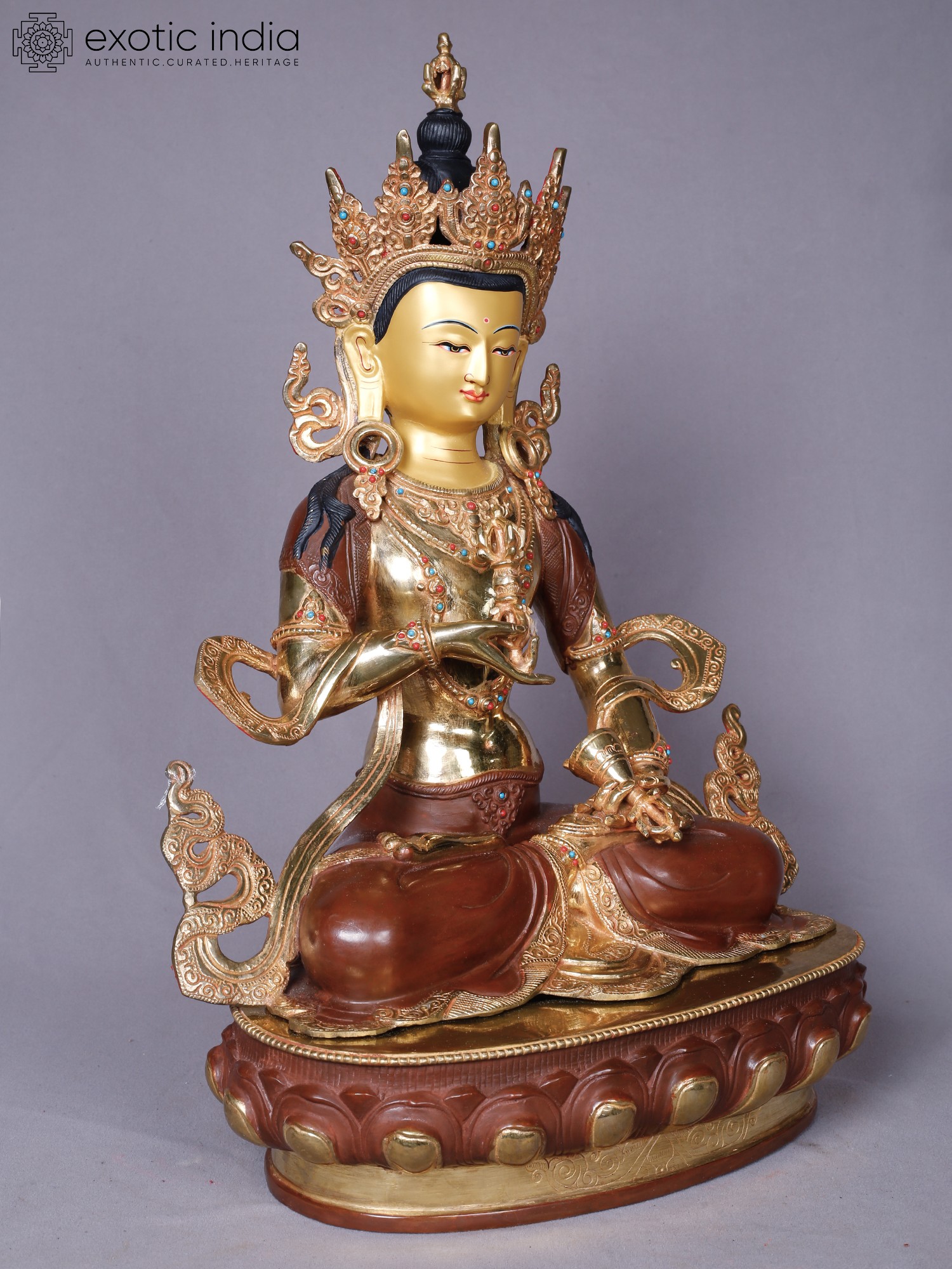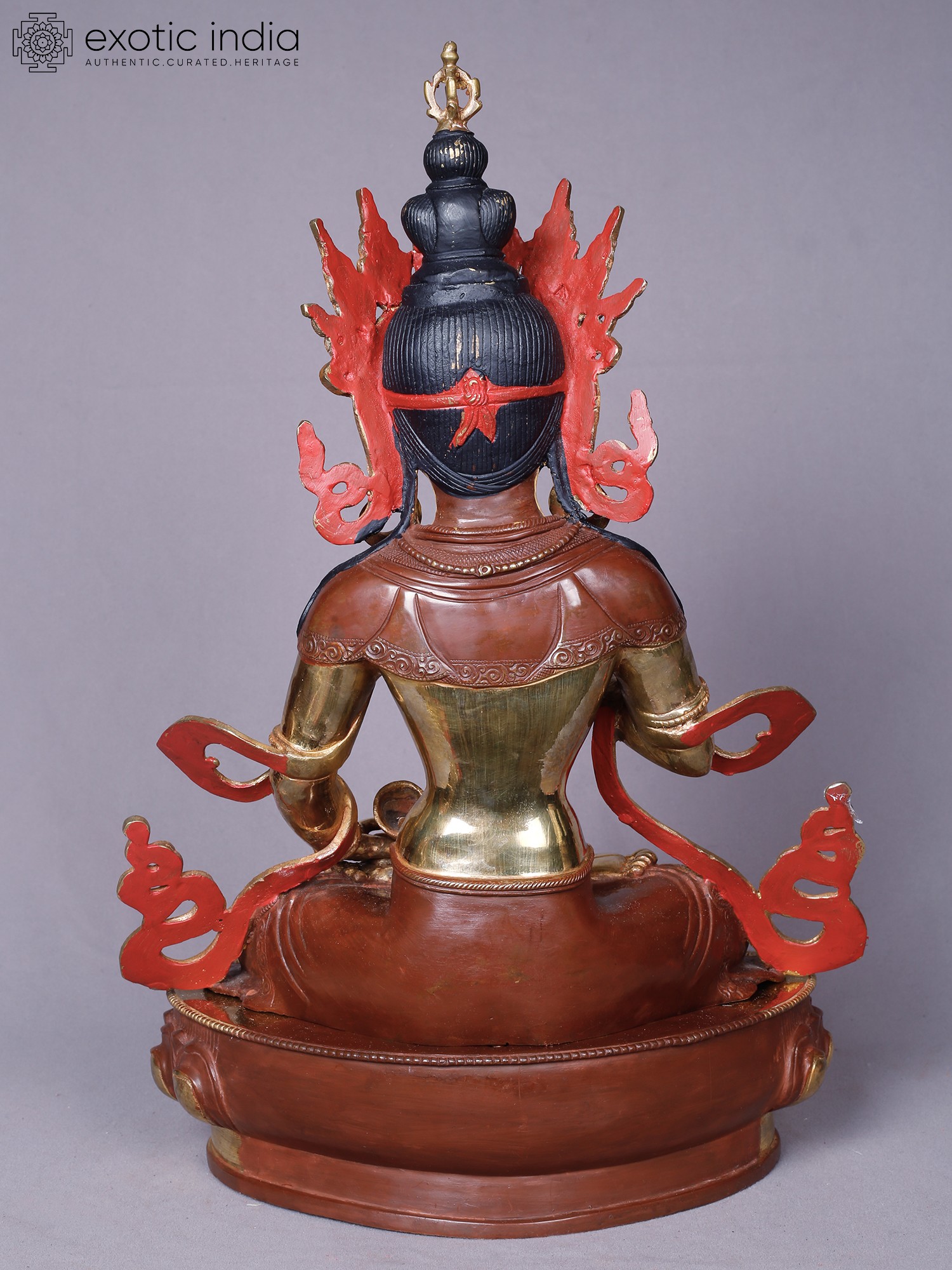 To preserve the lustrous beauty and intricate detail, dust gently with a soft, dry cloth. Avoid harsh chemicals or abrasive cleaners, which can damage the gold plating and the underlying copper. With thoughtful care, this sacred object will remain a source of inspiration and beauty for generations to come, its spiritual significance deepening with time.