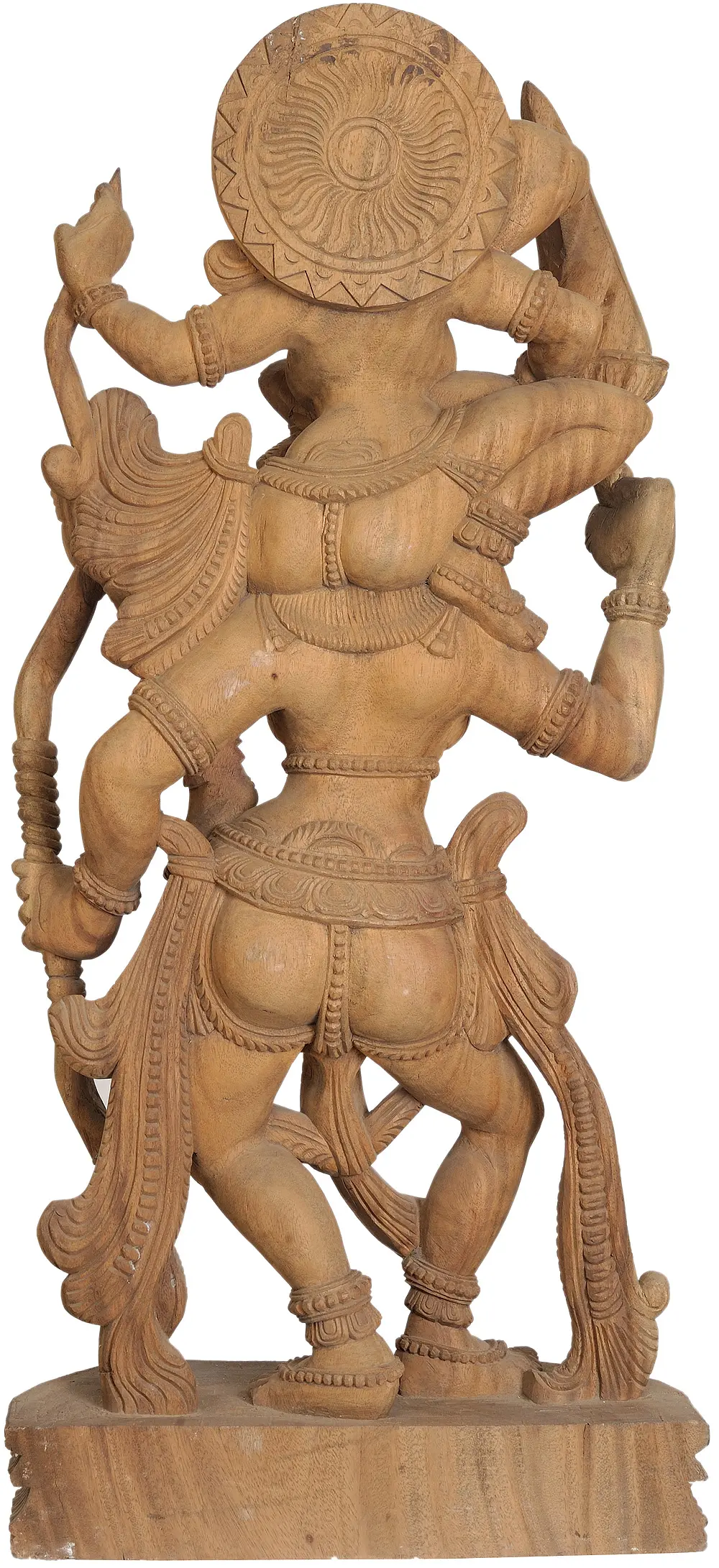 Hailing from the esteemed tradition of South Indian temple wood carving, this sculpture is a testament to generations of accumulated artistry. The wood itself, chosen for its durability and suitability for fine detail, has been transformed by the artisan's hands into a living, breathing form. Every curve, every fold of the clothing, and every element of ornamentation is executed with breathtaking precision. The texture of the wood, combined with the intricate carving, creates a tactile and visual experience that draws the viewer into the spiritual essence of the deity. The style reflects the architectural and sculptural traditions found in ancient temples, where such carvings were an integral part of the devotional landscape, intended to inspire awe and facilitate a connection with the divine. This piece is a heritage artwork, embodying the spiritual ethos and artistic excellence of its origin.