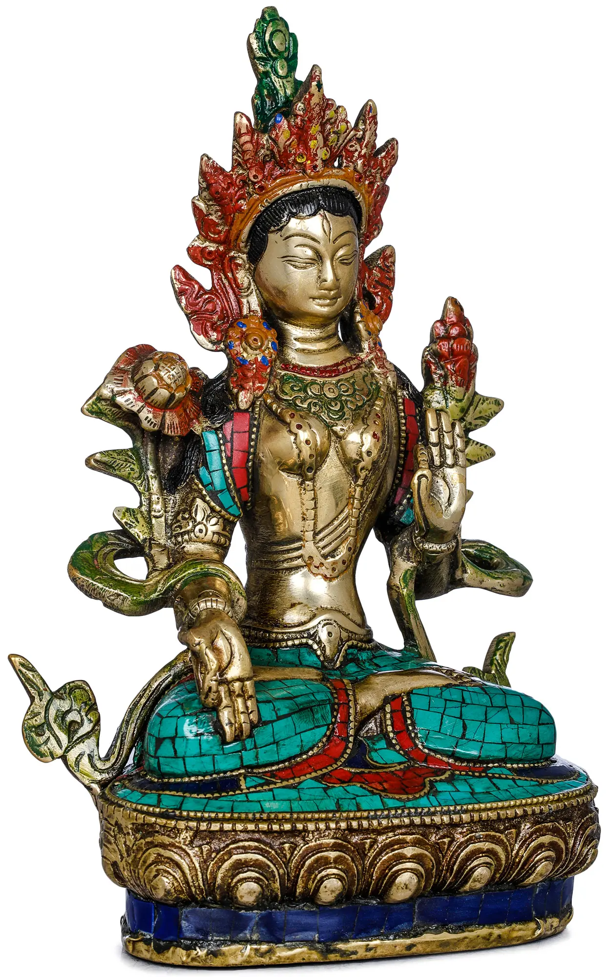 Tara is an important and revered deity in Tibetan Buddhism who appears as a female Bodhisattva. Buddhist monks and followers meditate on the image or deity of Tara to develop some good qualities such as compassion and kindness. Tara is known as the mother of compassion or liberation and is considered the female aspect of Avalokiteshvara (who possesses the compassion of all Buddhas). She manifests in different forms such as Green Tara and White Tara. Green Tara is associated with fearlessness and White Tara, as radiant as the moon, is associated with good health. Tara also appears in red, blue, and yellow colors.
