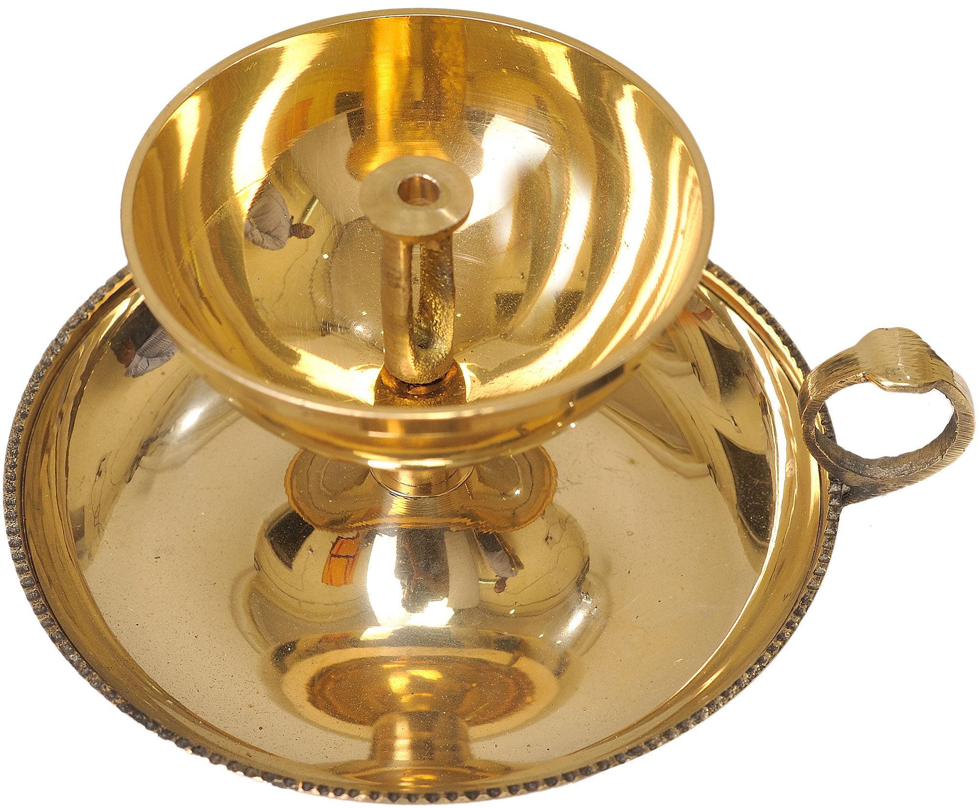 The compact size of this brass lamp makes it a versatile addition to any altar, puja room, or even a thoughtfully adorned shelf. Its manageable dimensions allow it to be placed with ease, bringing a touch of sanctity and warmth to your chosen location. The sturdy brass construction ensures its longevity, becoming a cherished heirloom passed down through generations, each lamp carrying with it the prayers and blessings of its users. The inclusion of a small handle adds a practical element, allowing for safe and easy movement during rituals or when replenishing the oil. The detailed rim around the base adds a touch of elegance and stability, grounding the lamp and enhancing its overall aesthetic appeal.