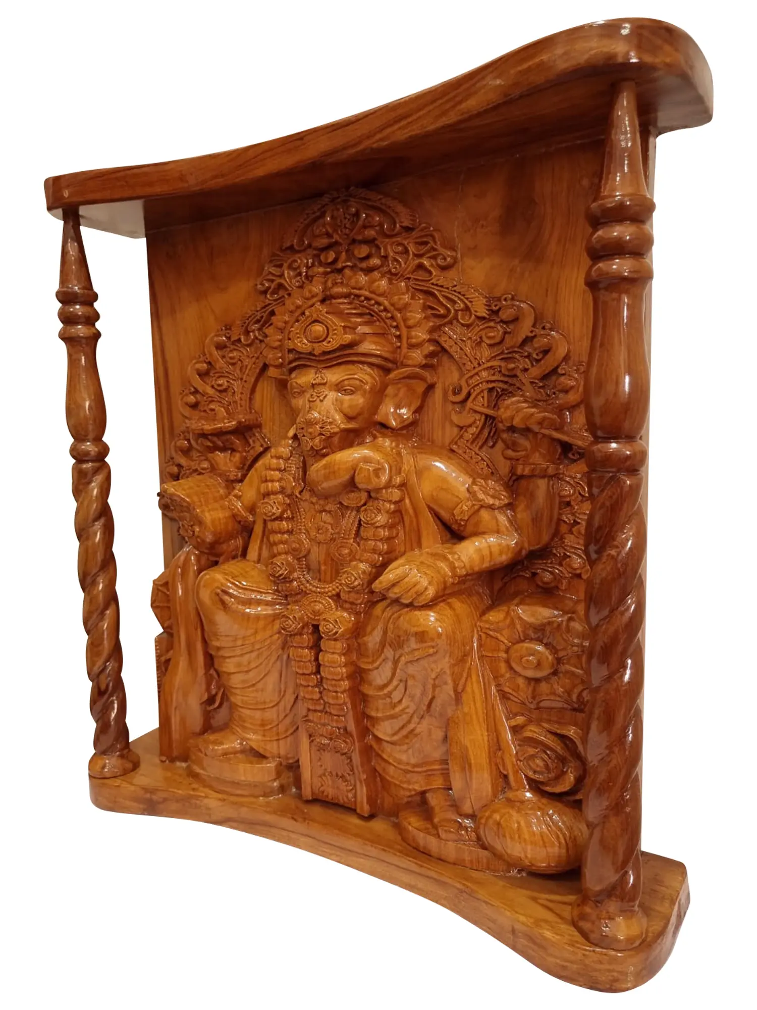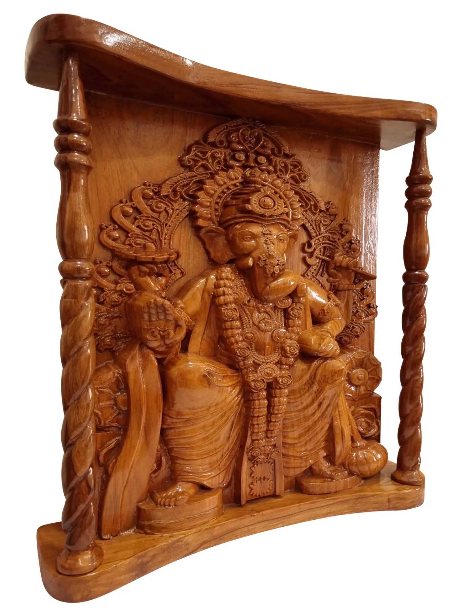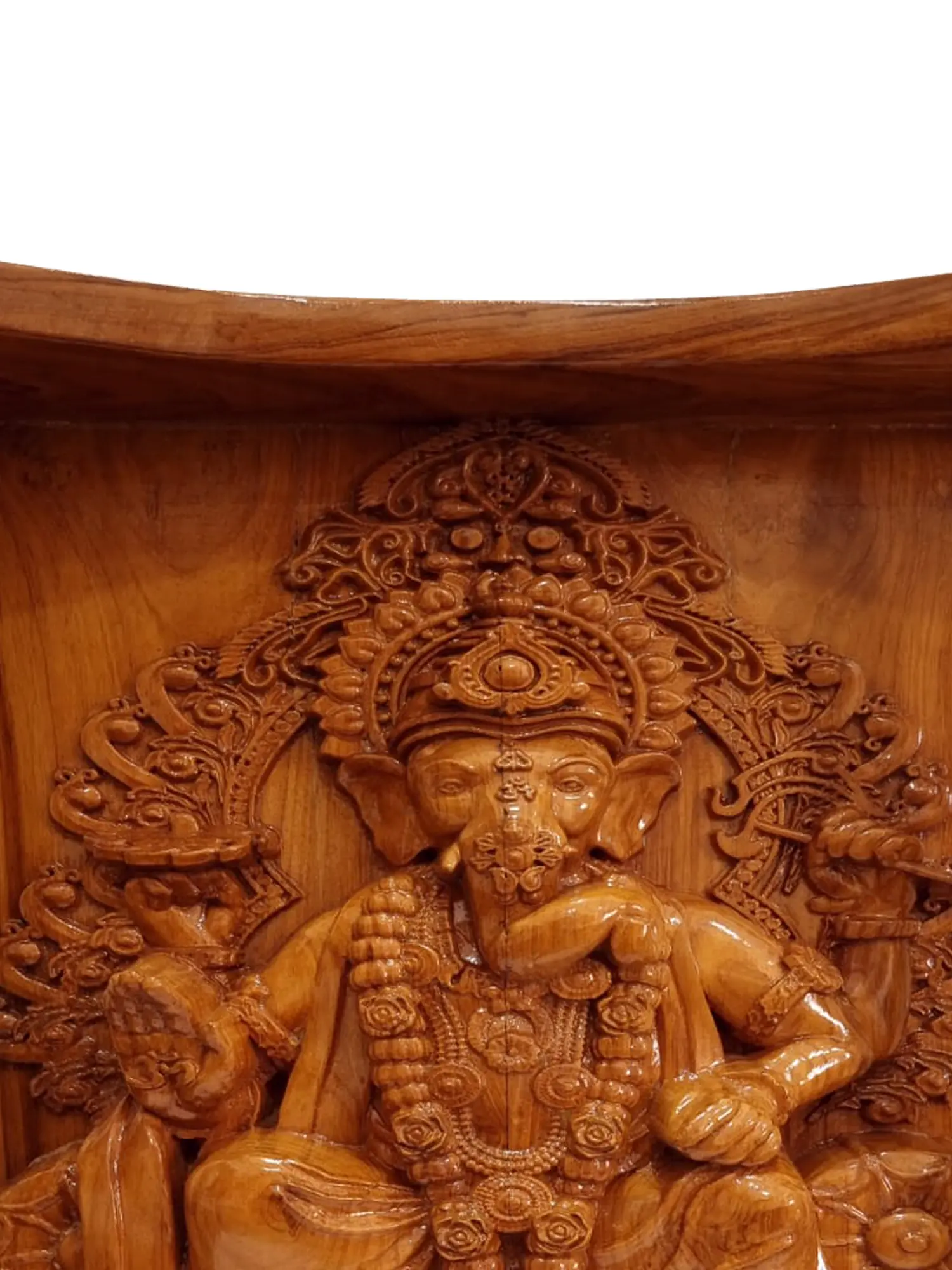 “Lalbaugcha Raja”, the celestial embodiment of “Ganesha”, transcends the mundane as “Navasacha Ganpati”, the granter of wishes. Crafted from teak wood, adorned with a resplendent PU glossy polish, this wood panel for your wall exudes divine elegance. It beckons with a magnetic allure, like the sacred deity himself, invoking a sense of enchantment and fulfilment. Each stroke of light dances across its polished surface, whispering secrets of devotion and desires granted. It stands as a gateway to the spiritual realm, where faith takes root and blossoms, where wishes take flight, bound to be answered by the benevolent Lord Ganesha.