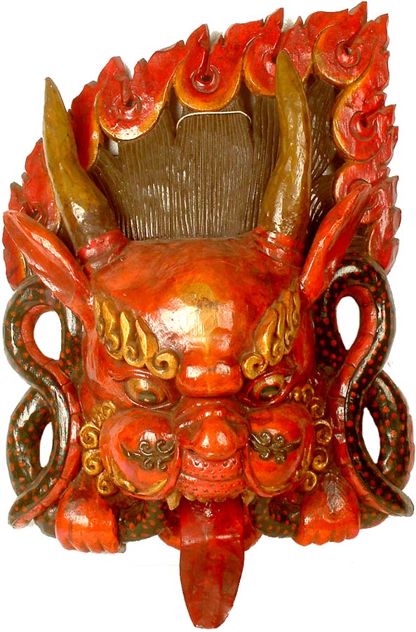 Brought to you from our Ritual & Puja Items Collection, this hand-carved wooden mask stands as a bold statement piece, a tangible representation of protective energy. Skillfully crafted in Nepal, its imposing presence will make a striking addition to any space.