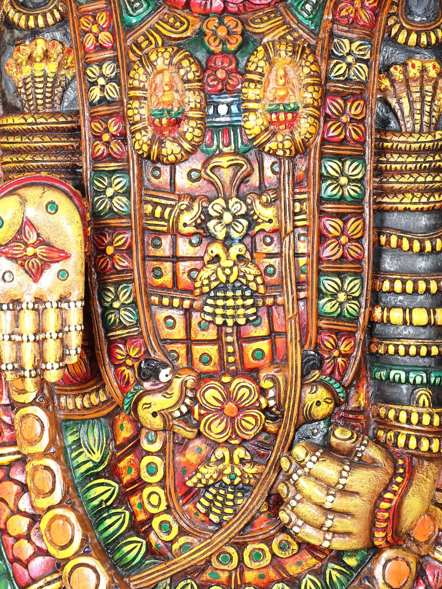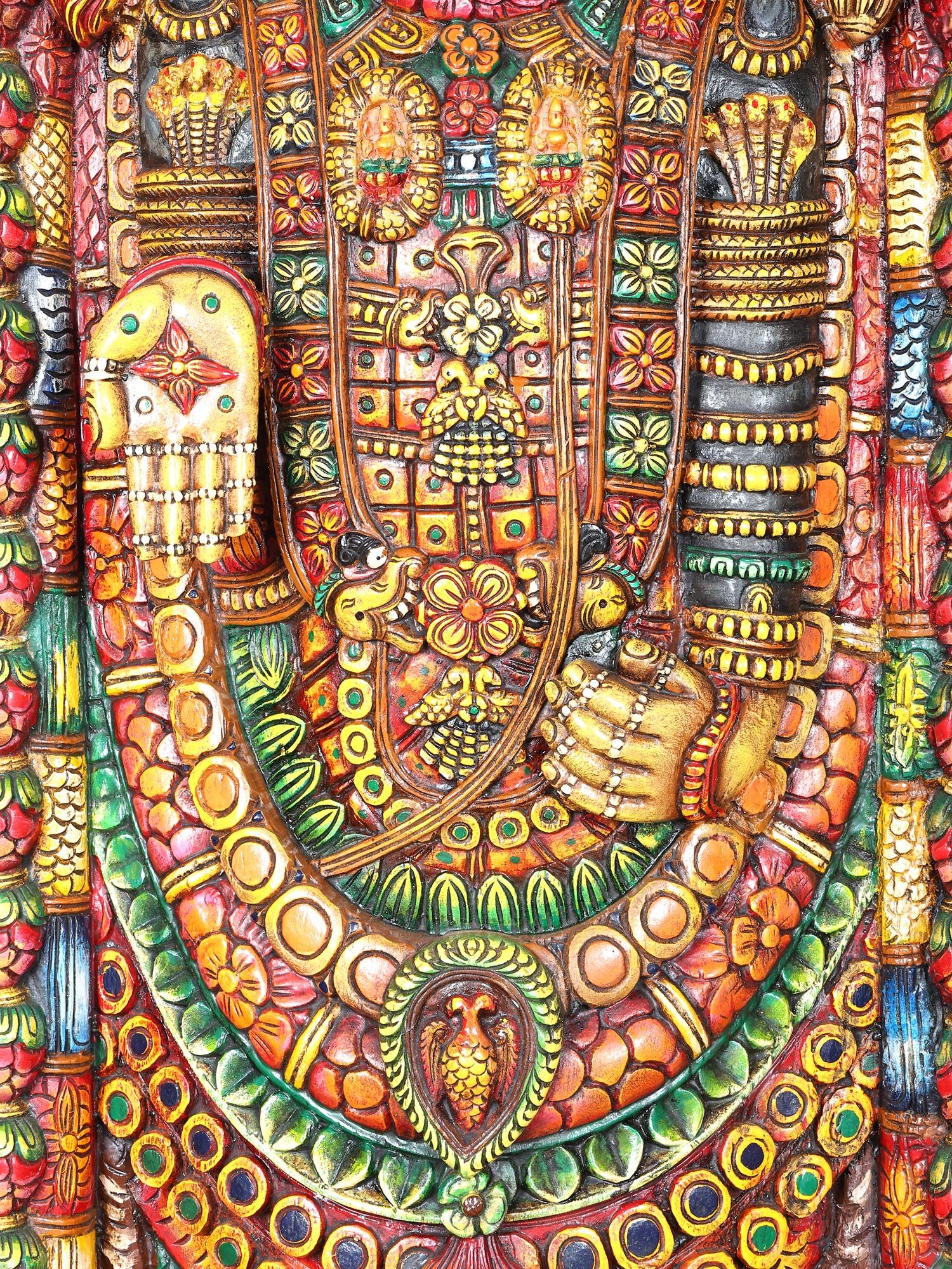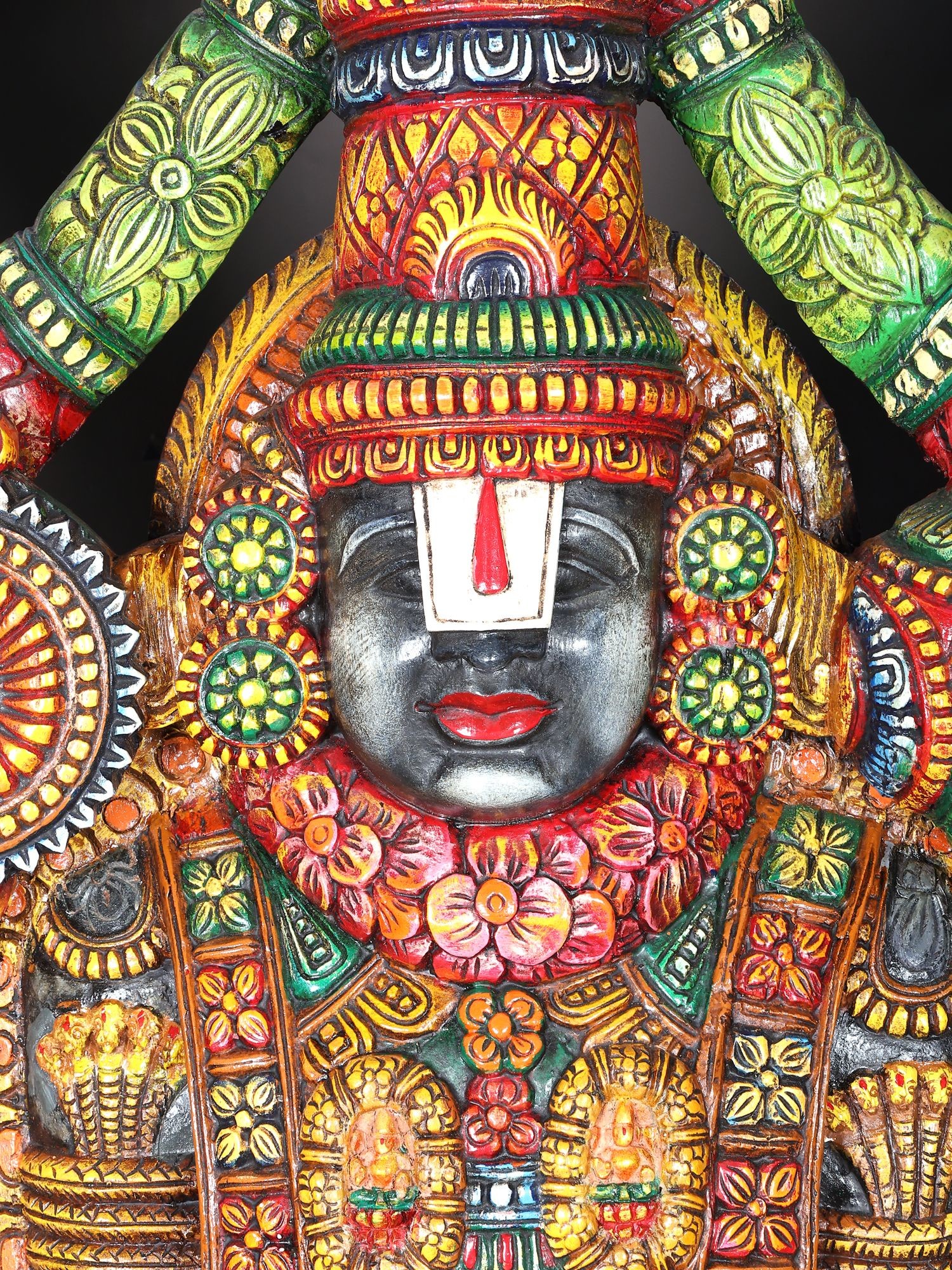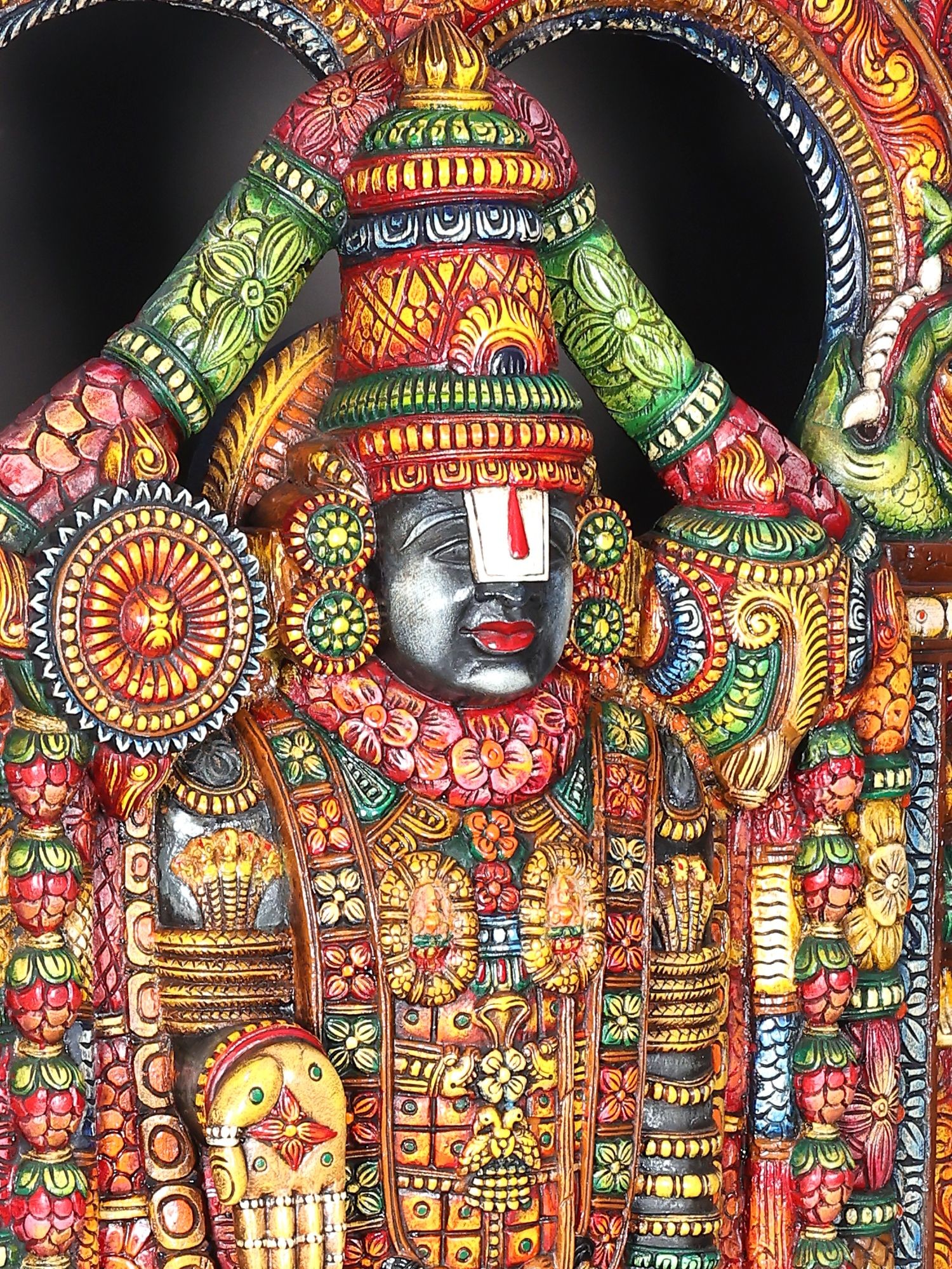 42" Large Colorful Tirupati Balaji (Venkateshvara) Wood Carving with Kirtimukha Arch