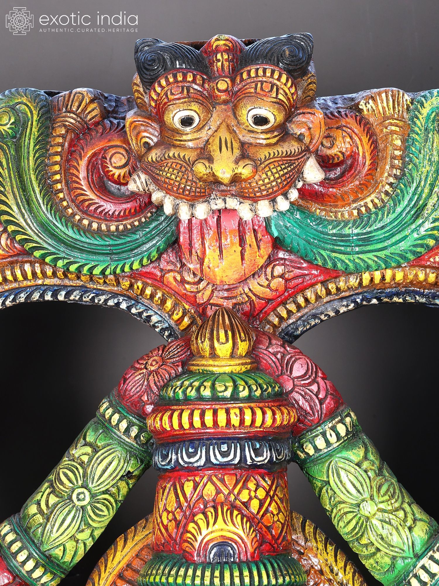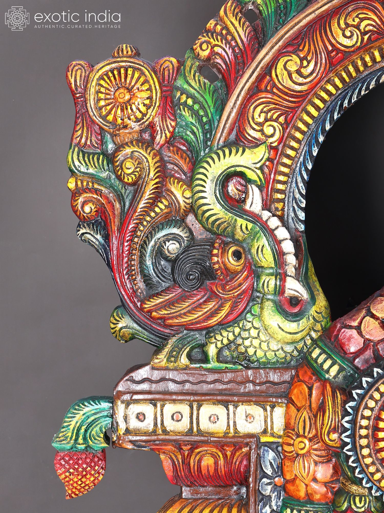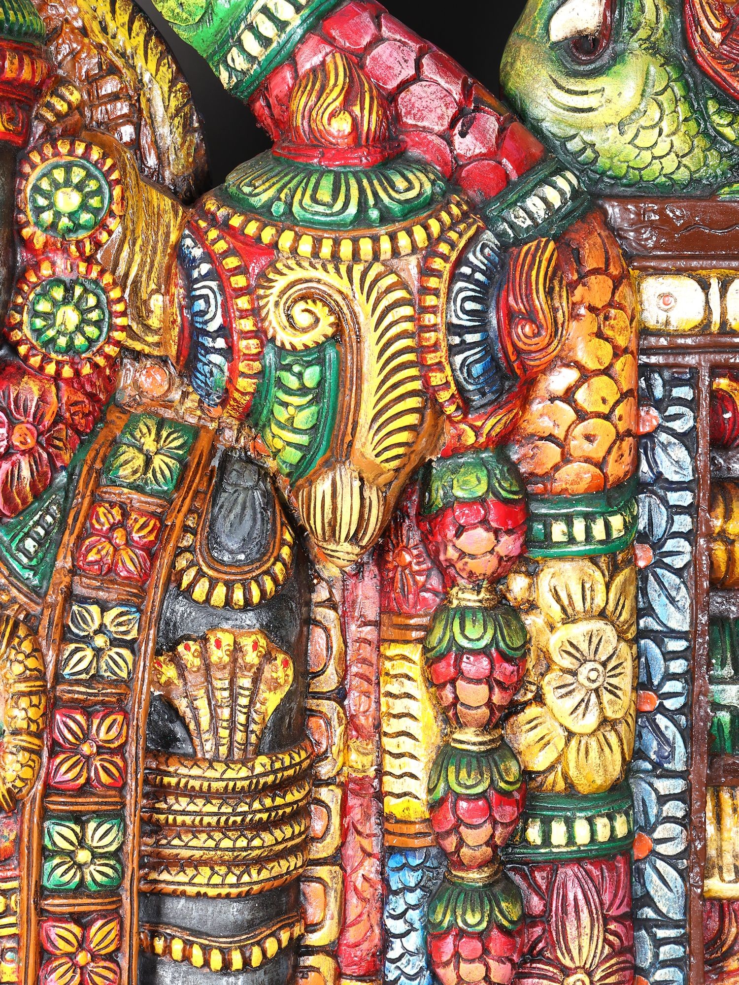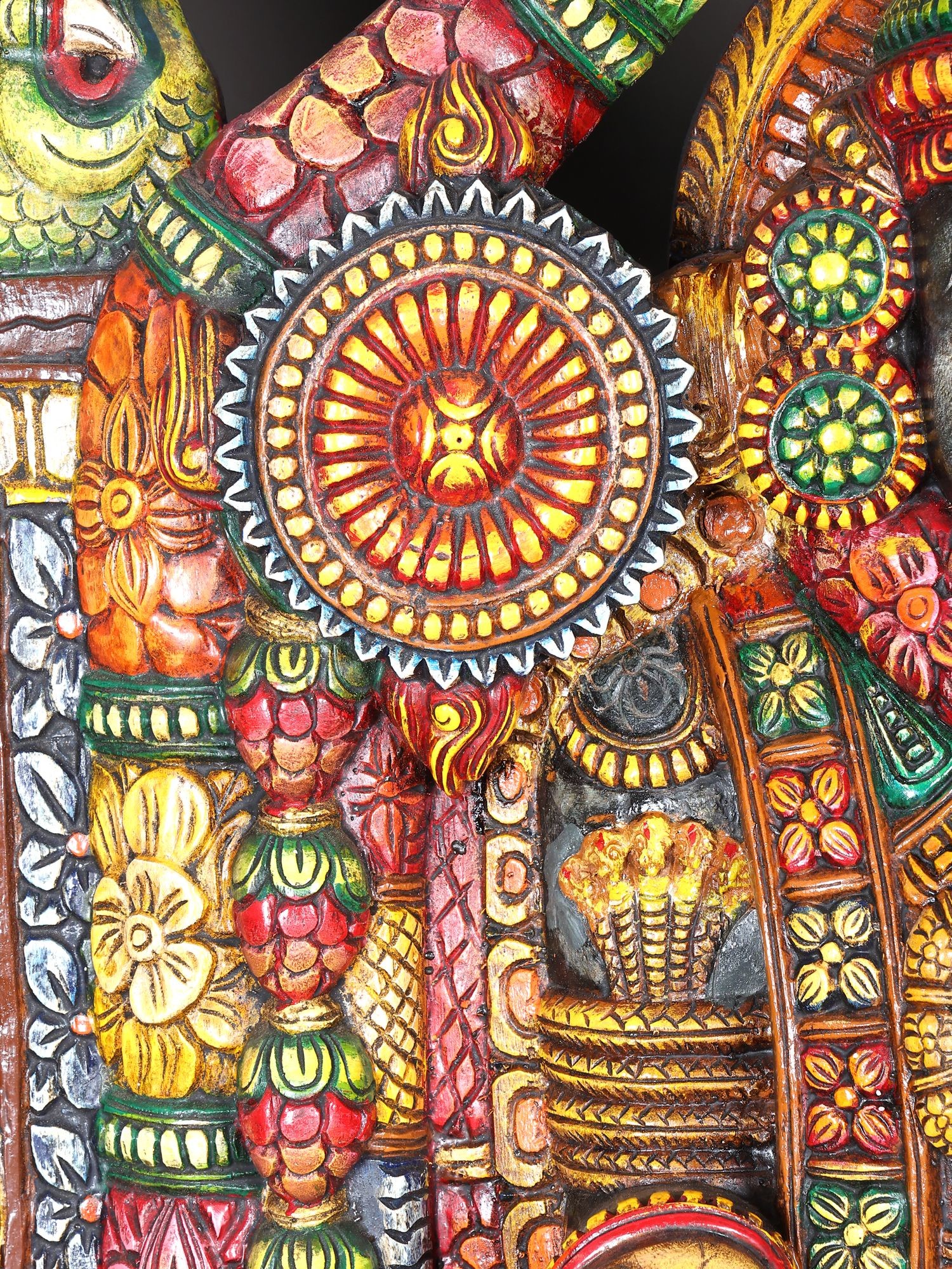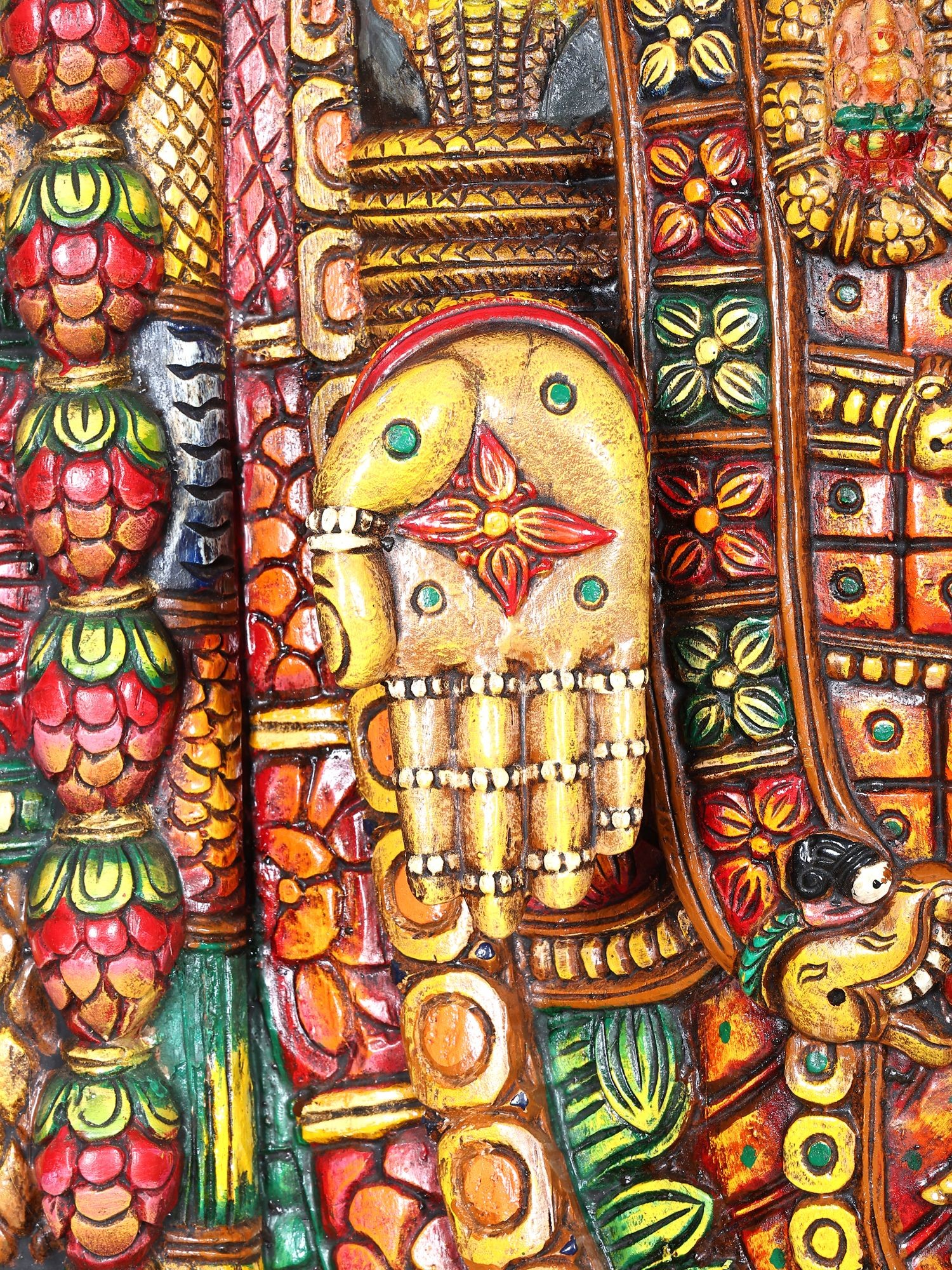 42" Large Colorful Tirupati Balaji (Venkateshvara) Wood Carving with Kirtimukha Arch