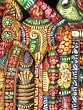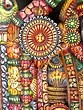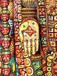 Crafted from wood with vibrant, multi-colored detailing that brings the sculpture to life.