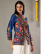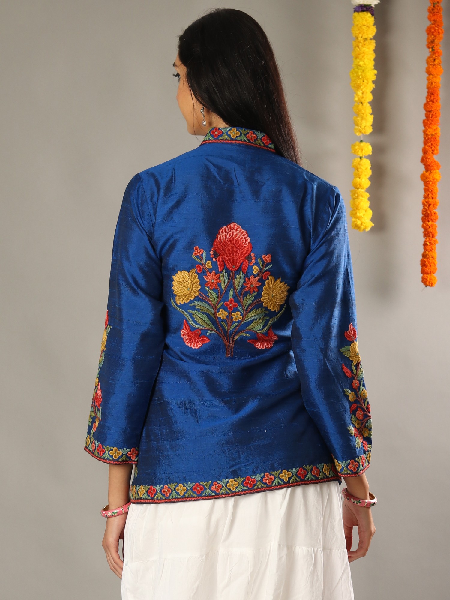Short Silk Jacket with Kashmiri Aari Paisley Embroidery in Vermillion-Orange