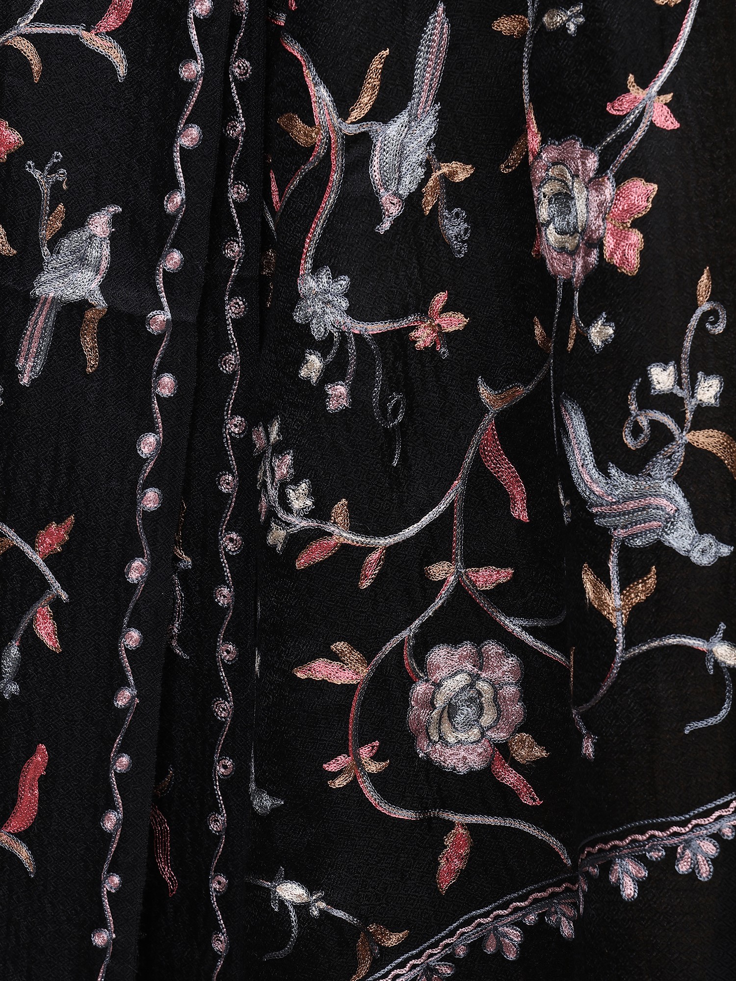 Aari Embroidered Shawl with Birds on Tree Branch Motifs from Amritsar