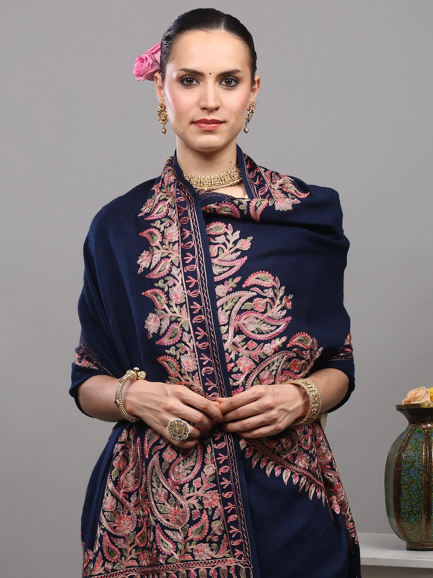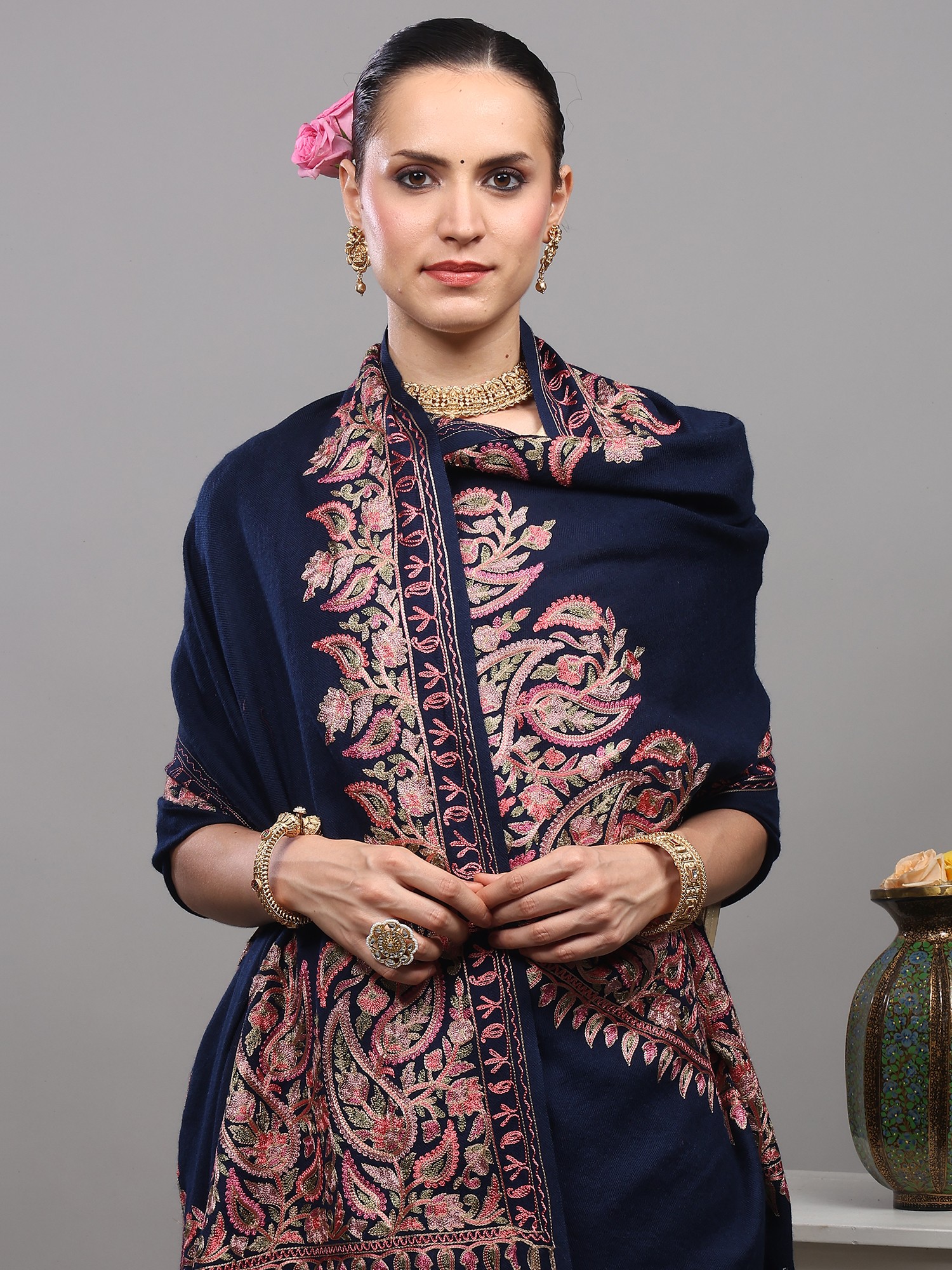 Fine Woolen Shawl with Paisley Aari Embroidery
