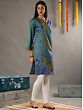 Ceramic-Green Applique Kurti from Surat with Metallic Thread Embroidered Flowers