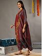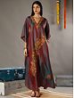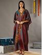 Montana-Grape Printed Satin Long Kaftan with Stone Work on Neck