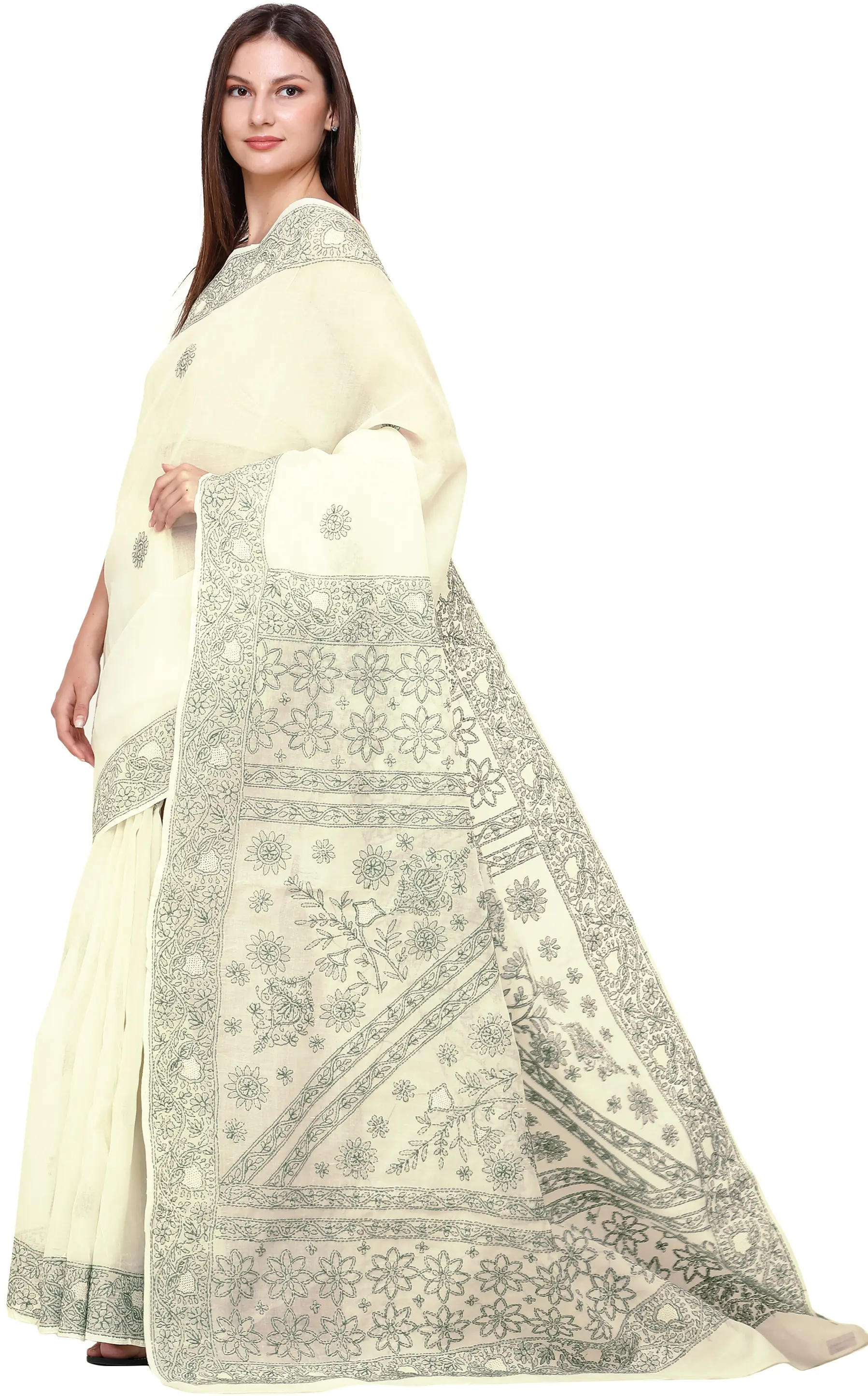 Snow-White Kurta Pajama with Lucknavi Chikan Embroidery All-Over