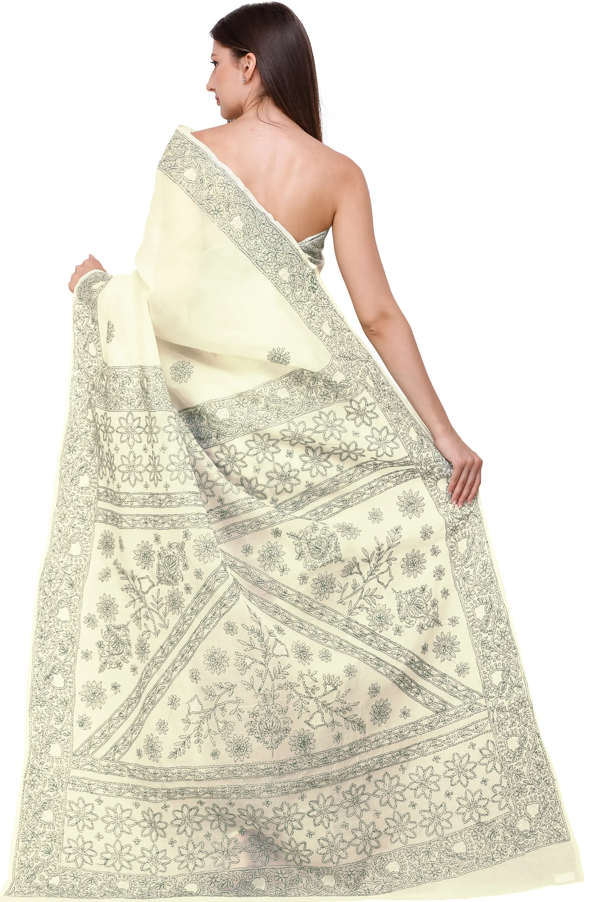 Lakhnavi Chikan Kurta Pajama Set with Metallic-Thread Embroidery