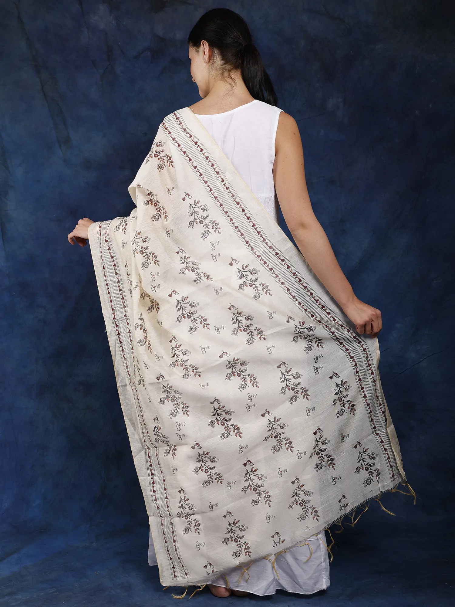 Immerse yourself in the artistry of Telangana with this exquisite dupatta, a testament to the region's rich textile heritage. Crafted from breathable and soft cotton, this piece drapes beautifully, offering both comfort and a sophisticated aesthetic. The soft, alabaster hue serves as a delicate canvas for the charming printed motifs that adorn its expanse.