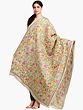 Alabaster-Gleam Kantha Dupatta from Kolkata with Hand-Embroidered Foliage