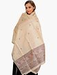 Khadi Cotton Madhubani Art Shawl from Bihar with Printed Wedding Palanquin and Peacocks Border