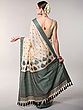 Moss-Gray Pure Silk Booti Motifs Saree with Zari Woven Contrast Border-Pallu from Kumbakonam