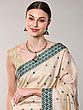 Pure Silk Bootis Woven Saree with Golden Thread work Peacock Border and Bold Paisley Pallu from Bangalore