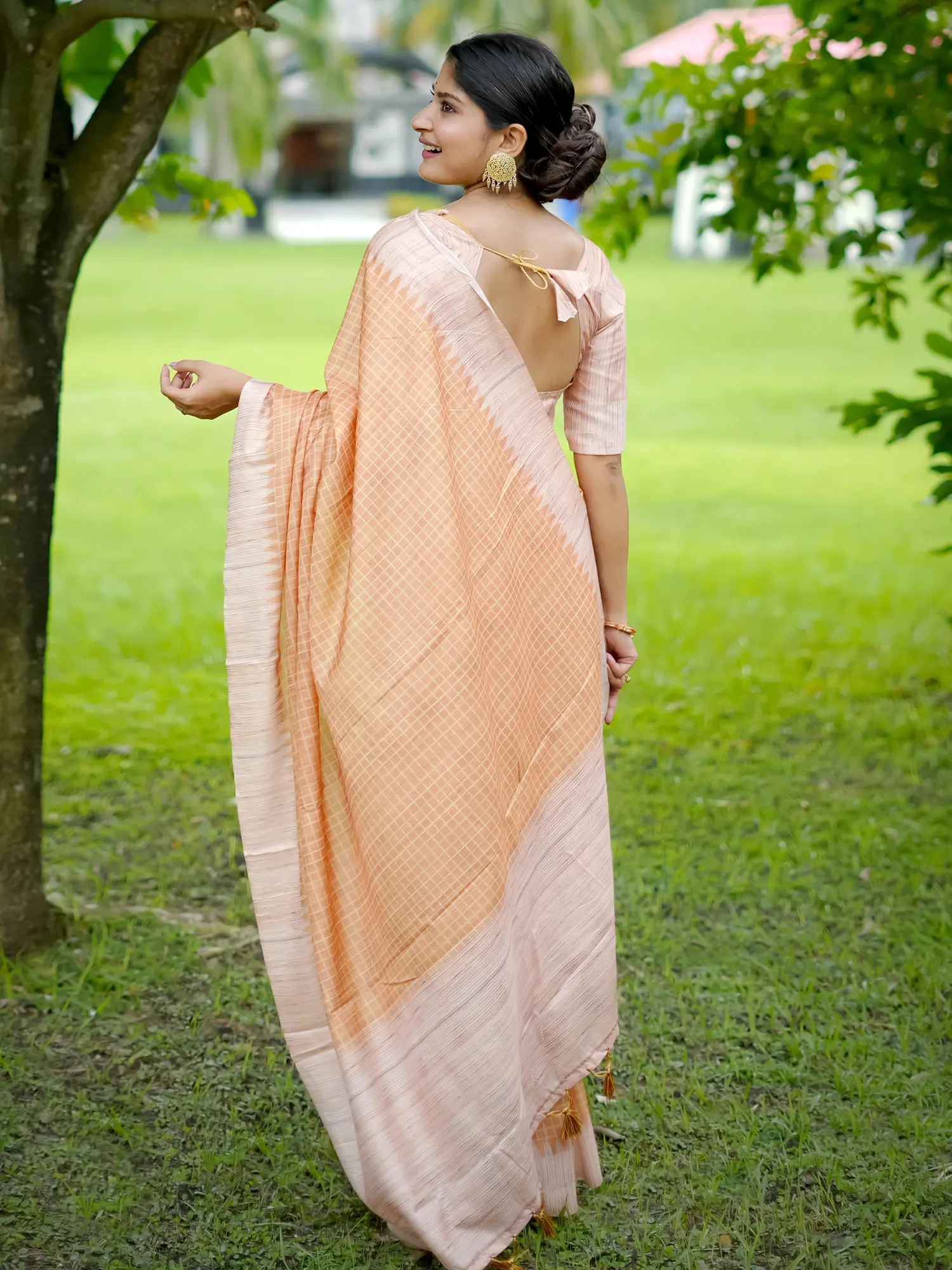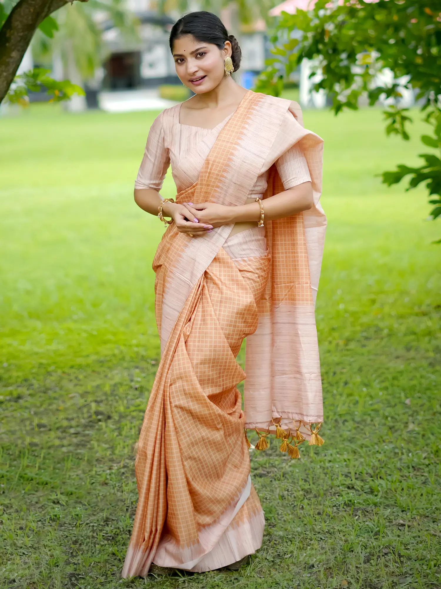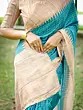 Dual Shade Pure Silk Saree with Golden Zari Woven Peacock-Elephant Motif Broad Border and Bold Aamra Motif on Pallu