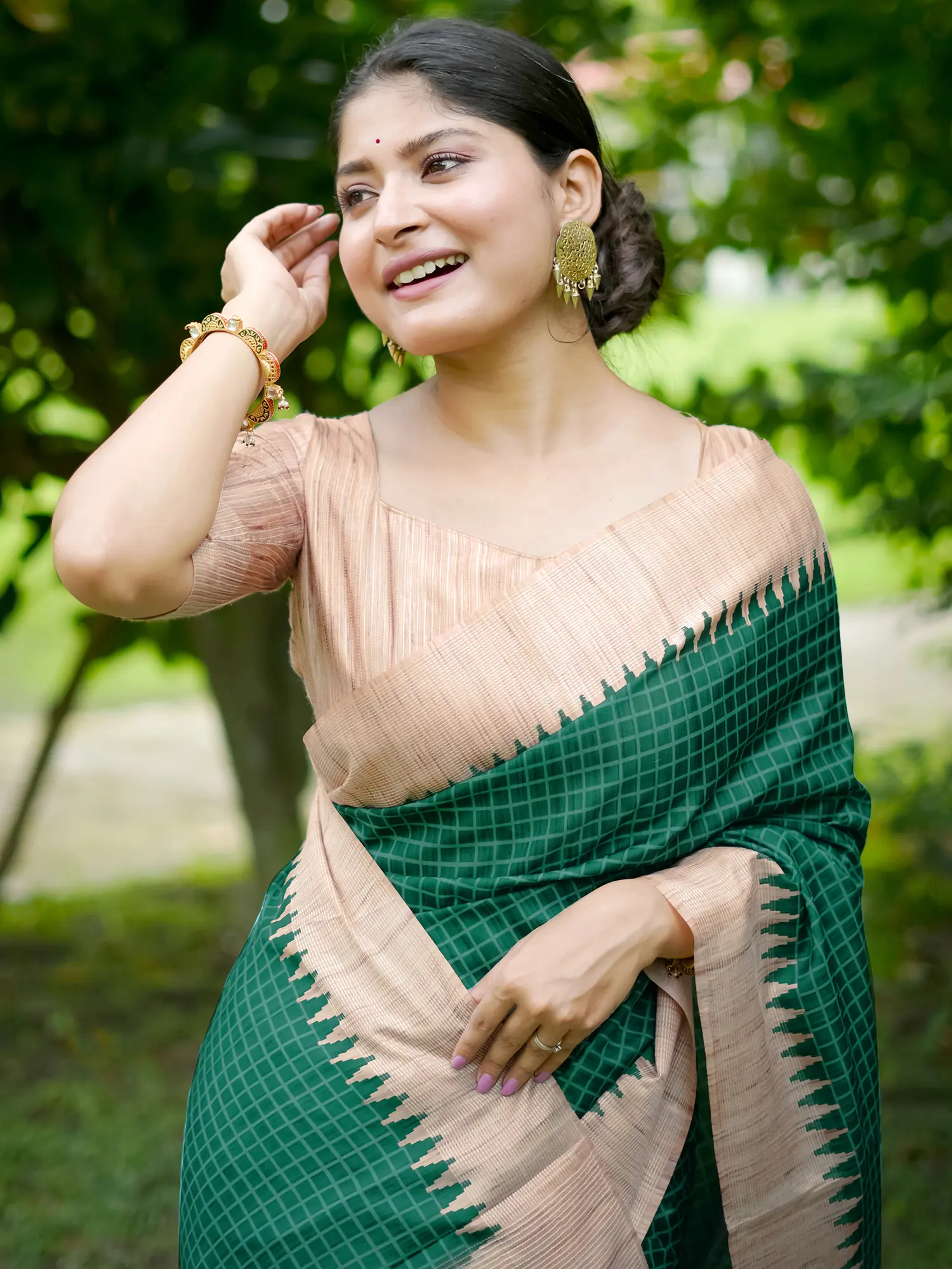 Hunter-Green Silk Saree with Bagru Block Printed Floral Motifs from Madhya Pradesh