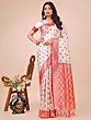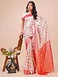 Cloud-Cream Handloom Pure Silk Banarasi Sari with Kadhwa Woven Flowers All-over