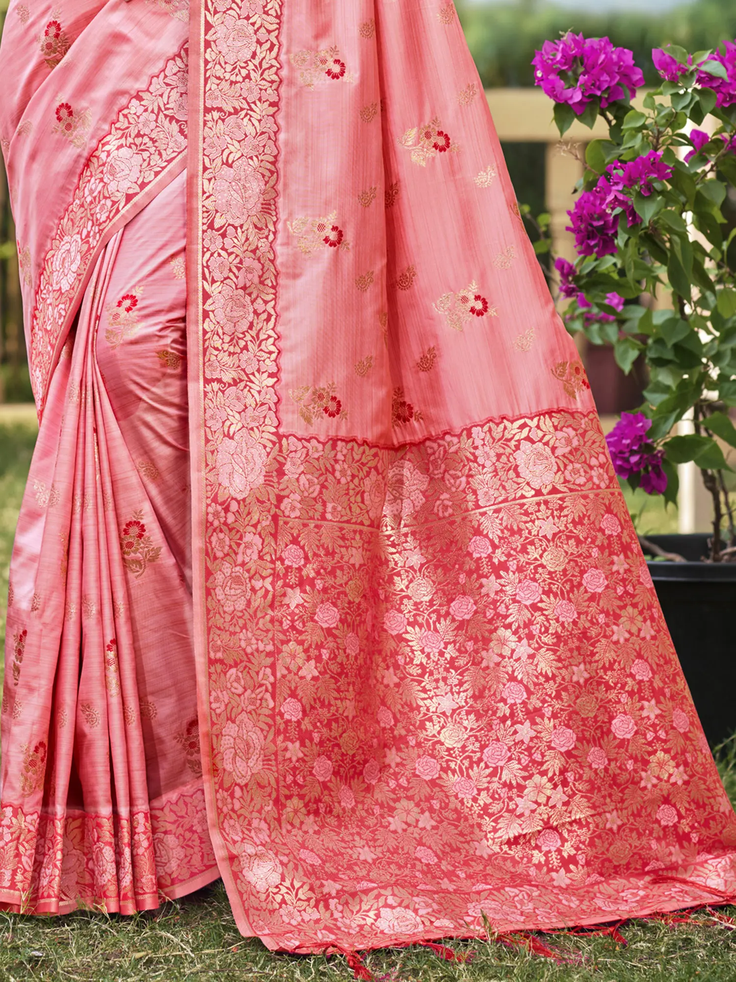 Apricot-Gelato Floral Aari Embroidered Georgette Saree from Kashmir