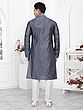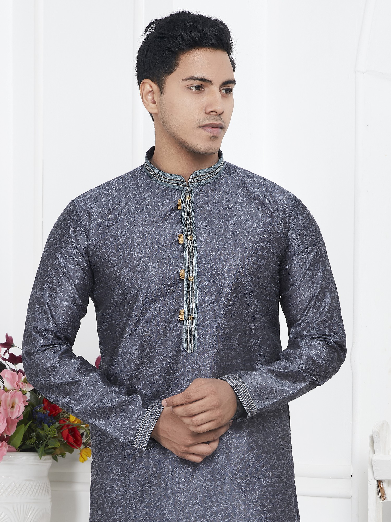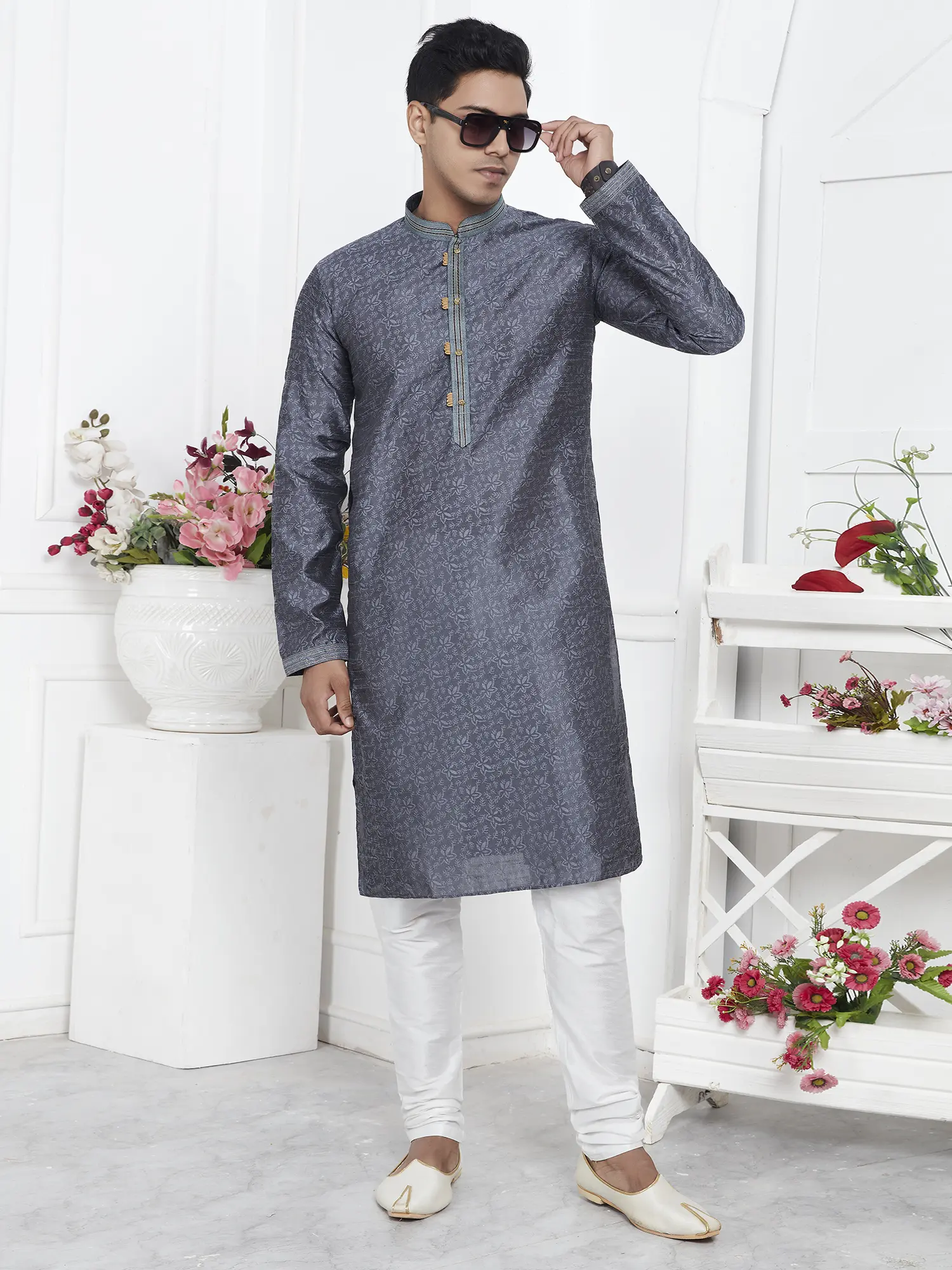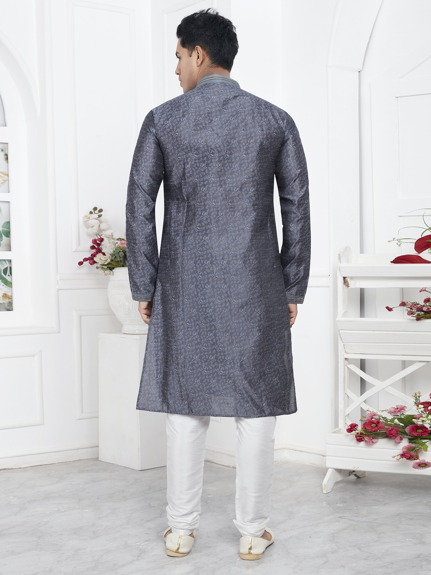 Wedding Kurta Pajama Set with All-Over Woven Floral Motifs in Self