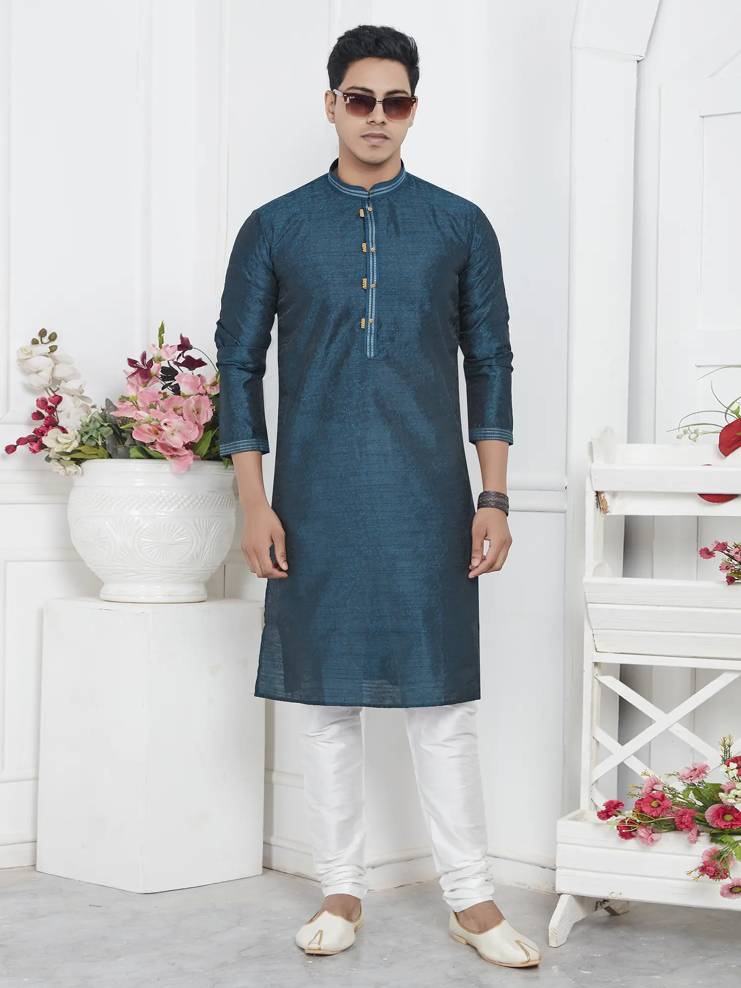 Plain Pure Cotton Kurta Pajama with Embroidery on Neck