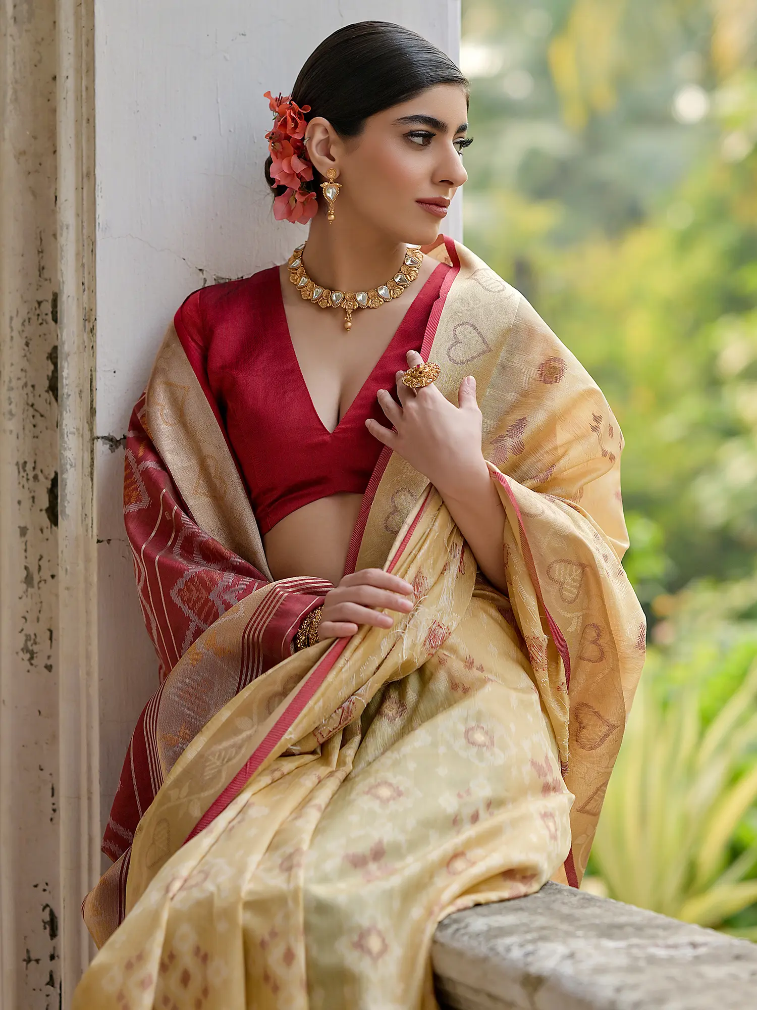 Banarasi Silk Brocaded Kora Sari with Woven Pattern All-over