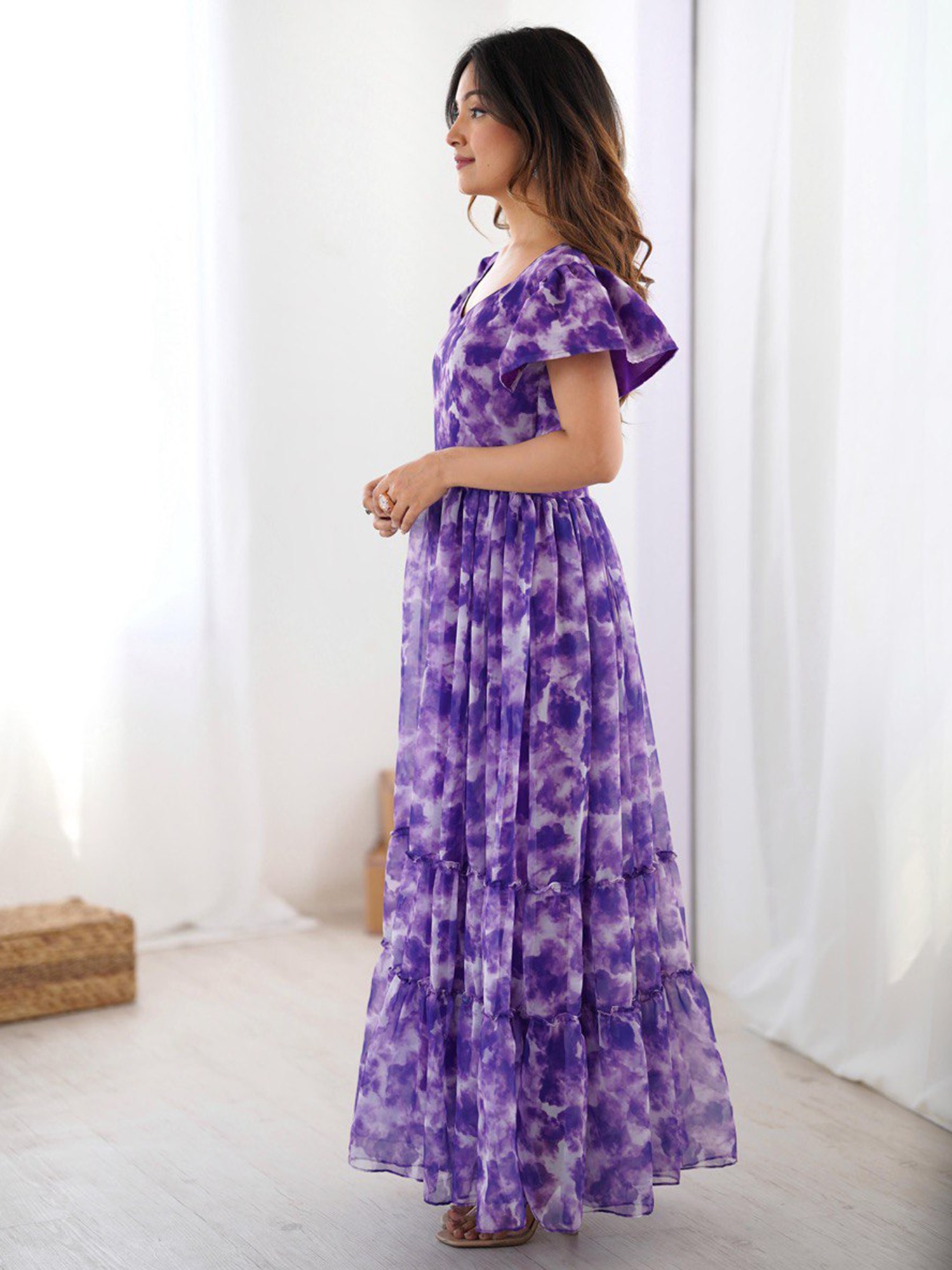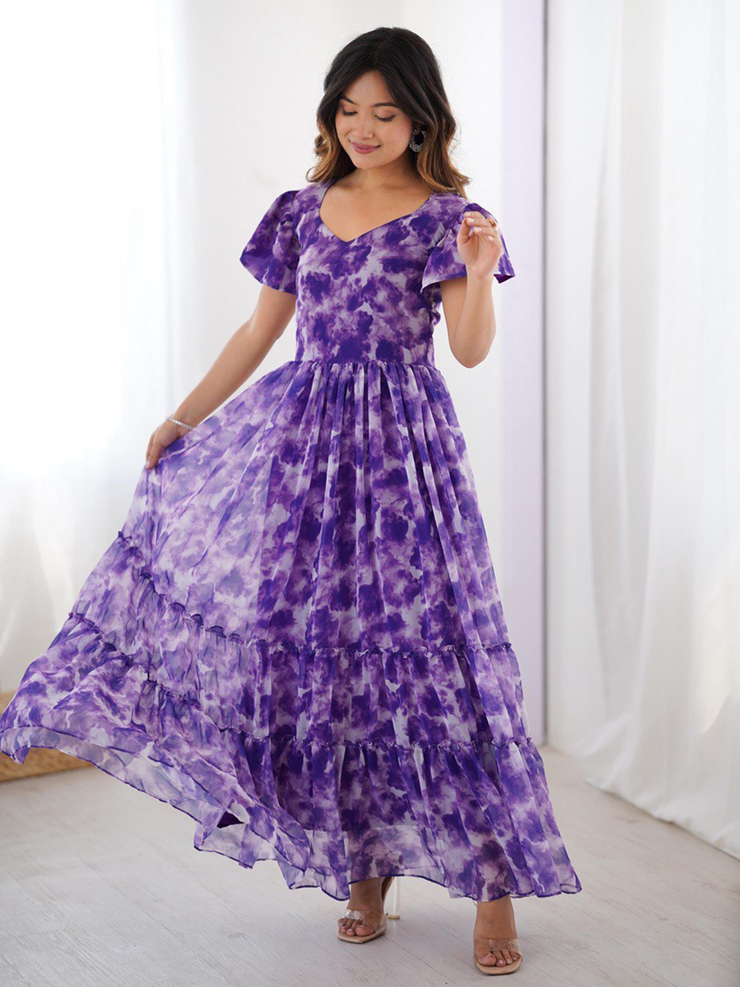 Old Lavender Cotton Silk Digital Print Gown With Bottom & Cotton Duppatta