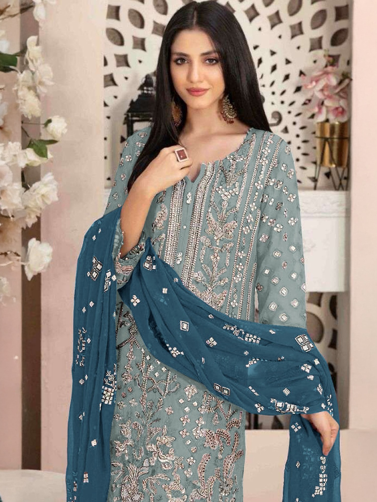 Three Piece Salwar Kameez Fabric with Matching Dupatta and Woven Paisley Motifs