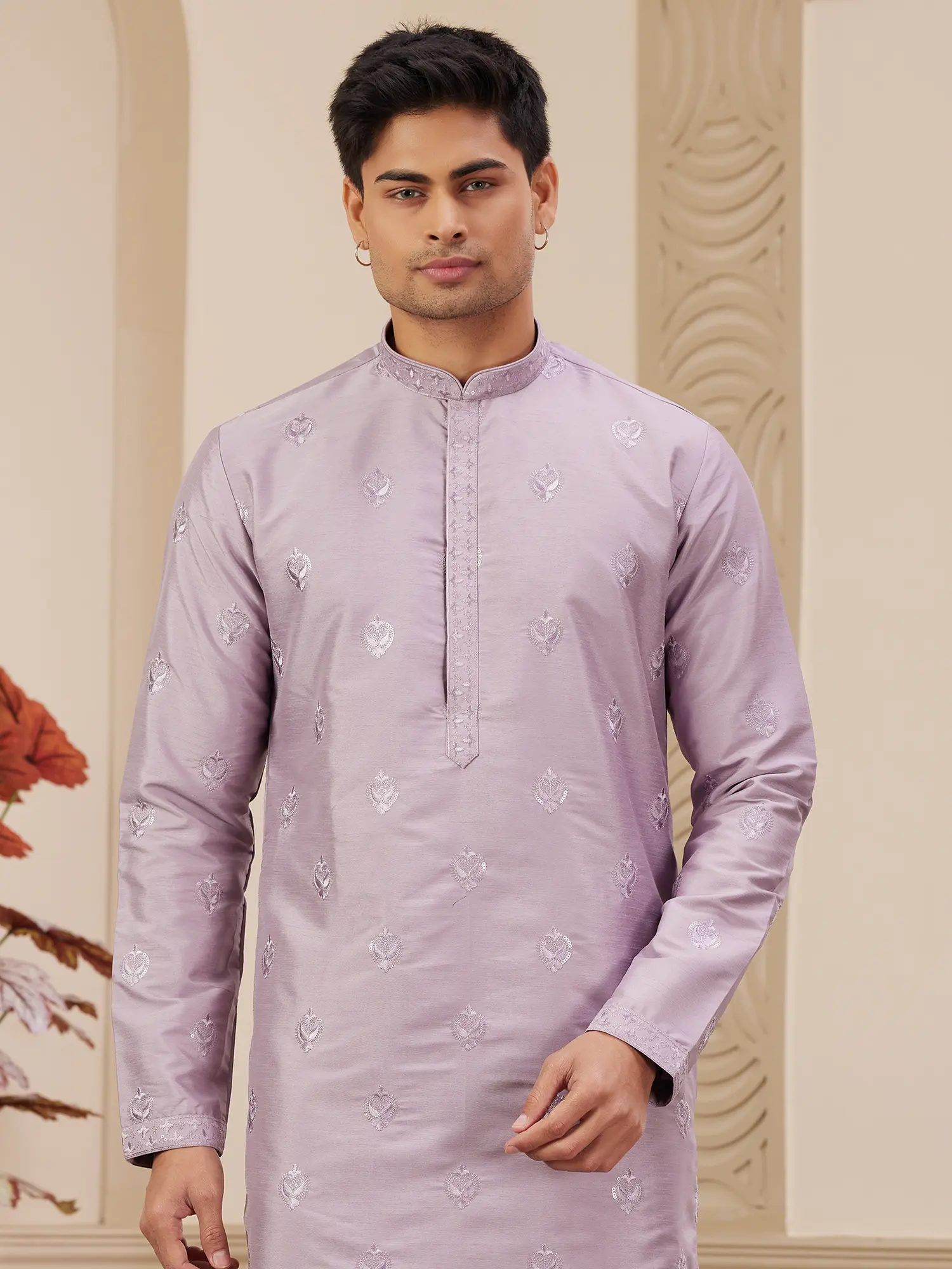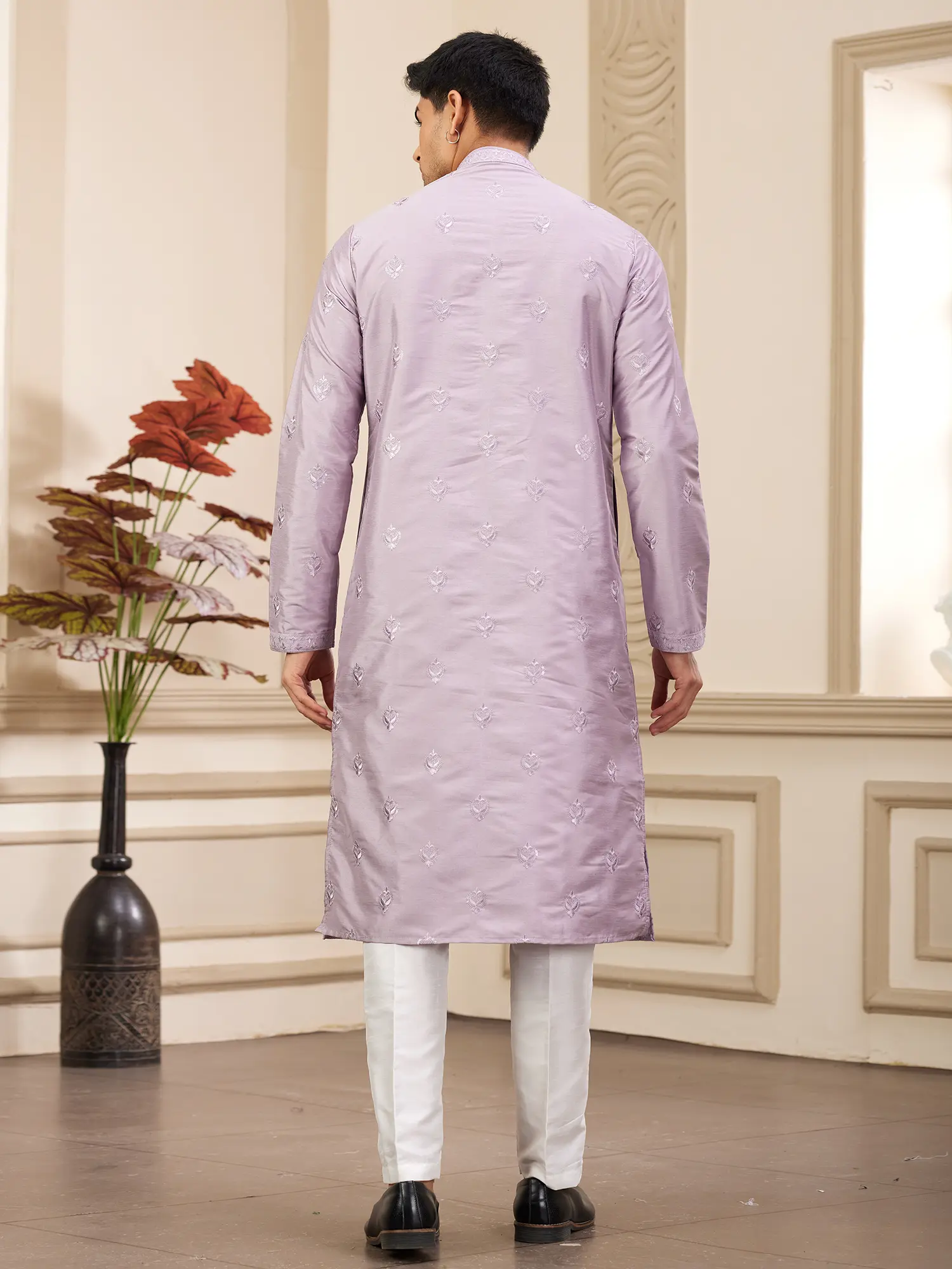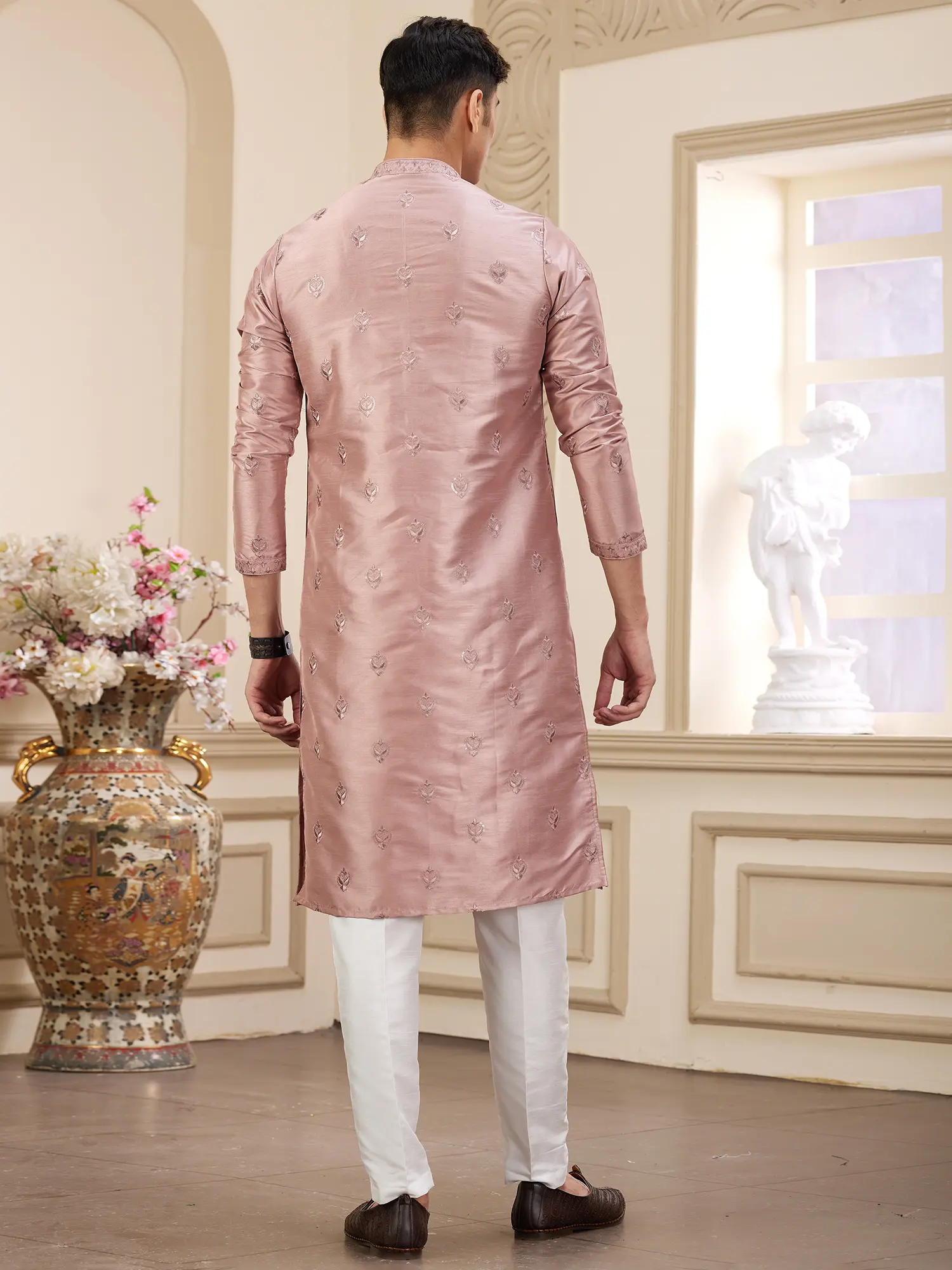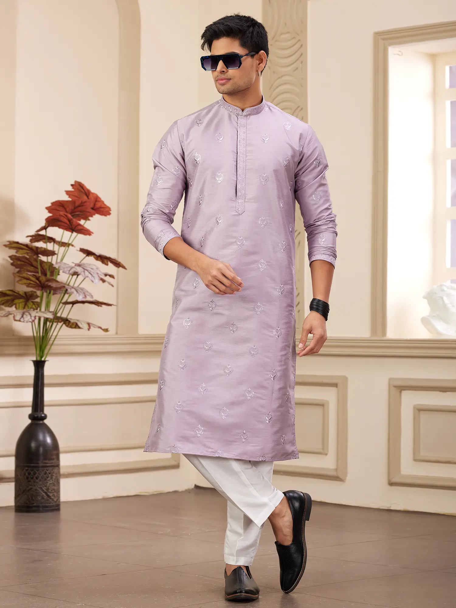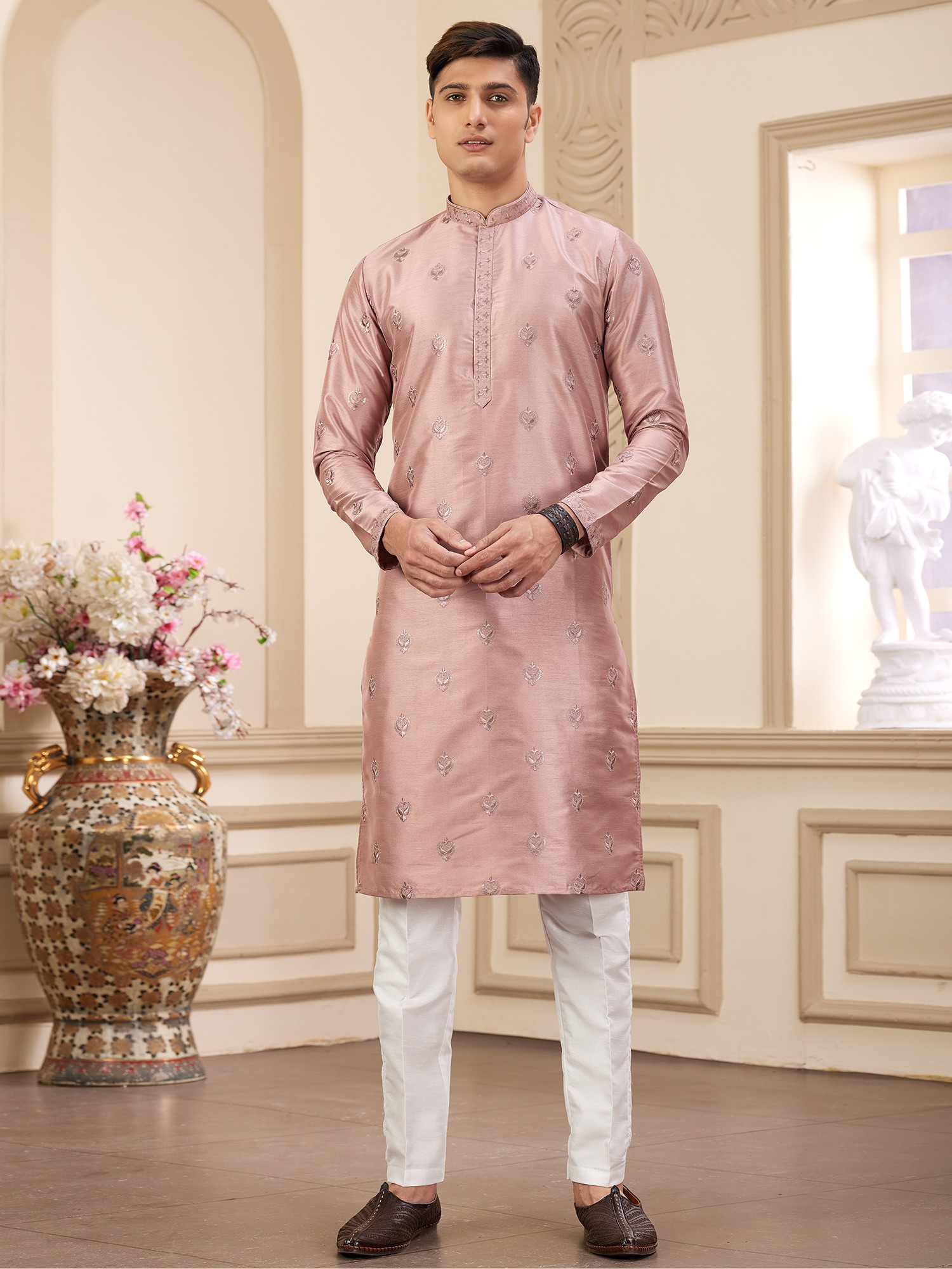 All Over Thread Sequins Work Mandarin Collar Stunning Viscose Silk Kurta With Dupatta For Wedding Occasion