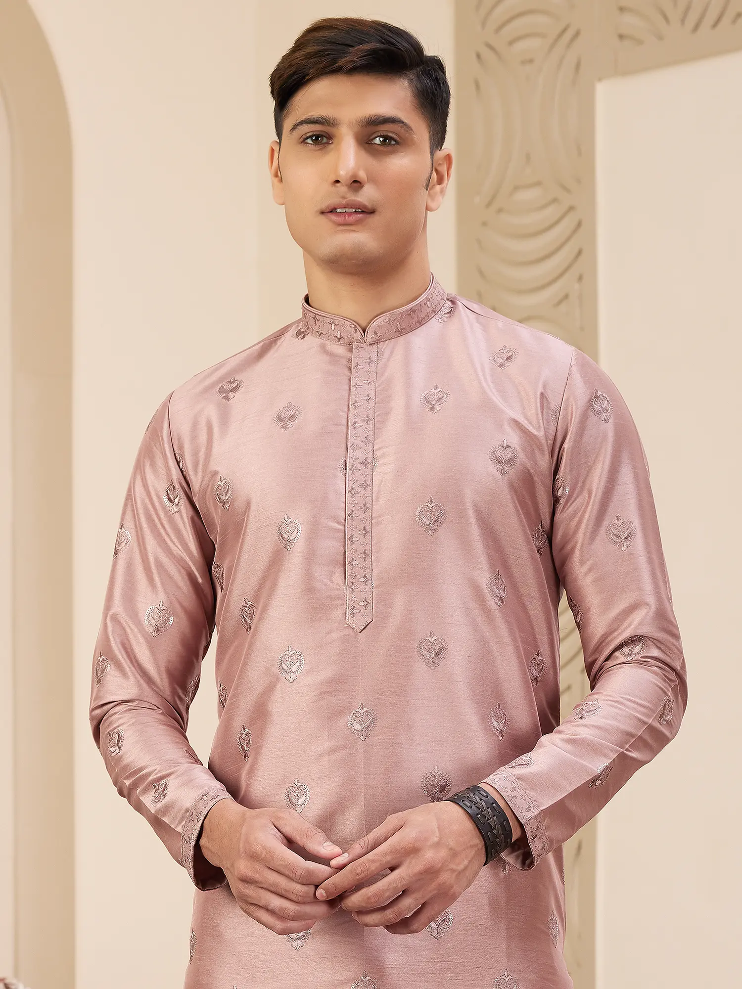 Elegant Brocade Kurta Pajama Set with Thread and Zari Work on Collar-Placket