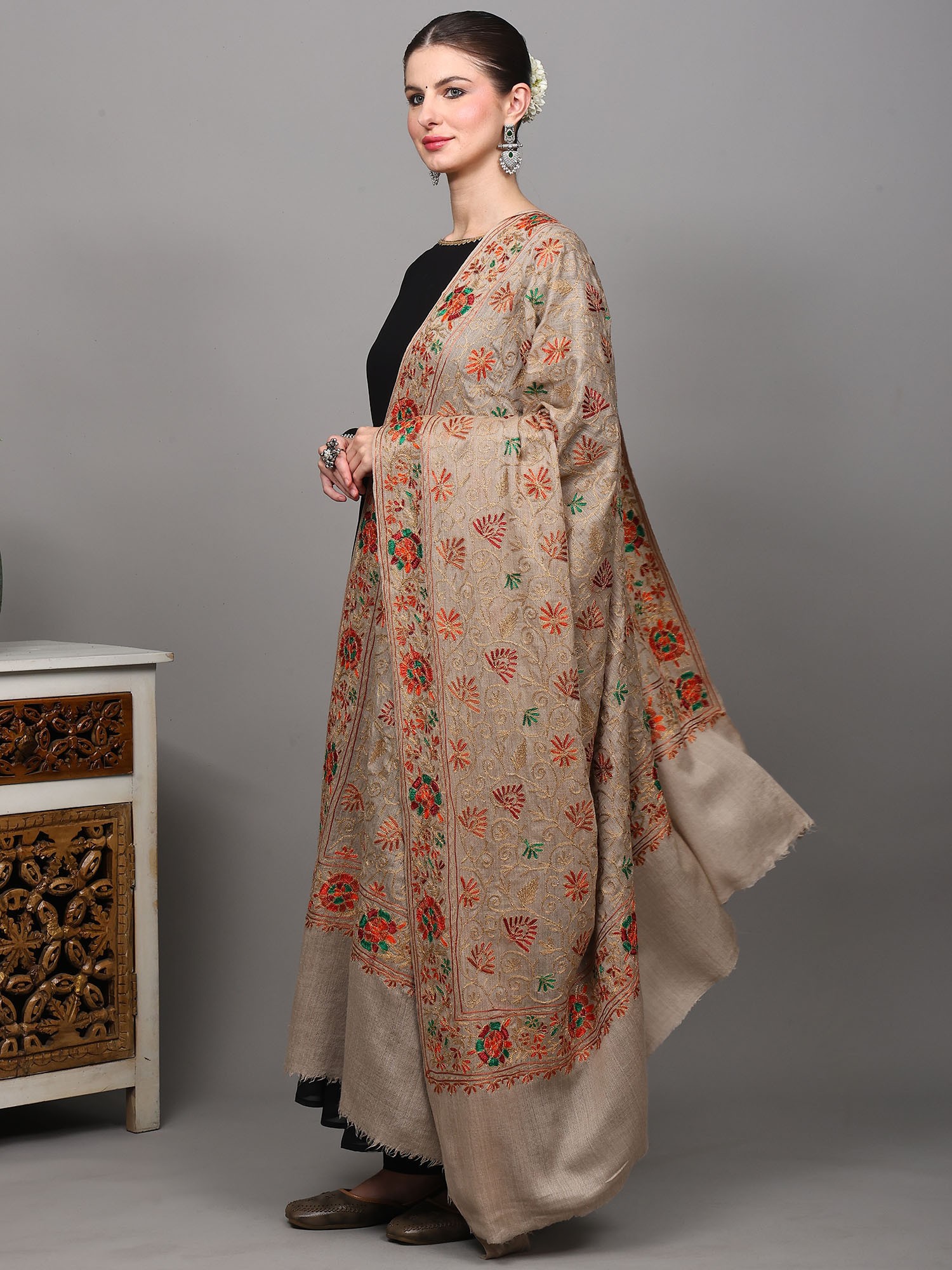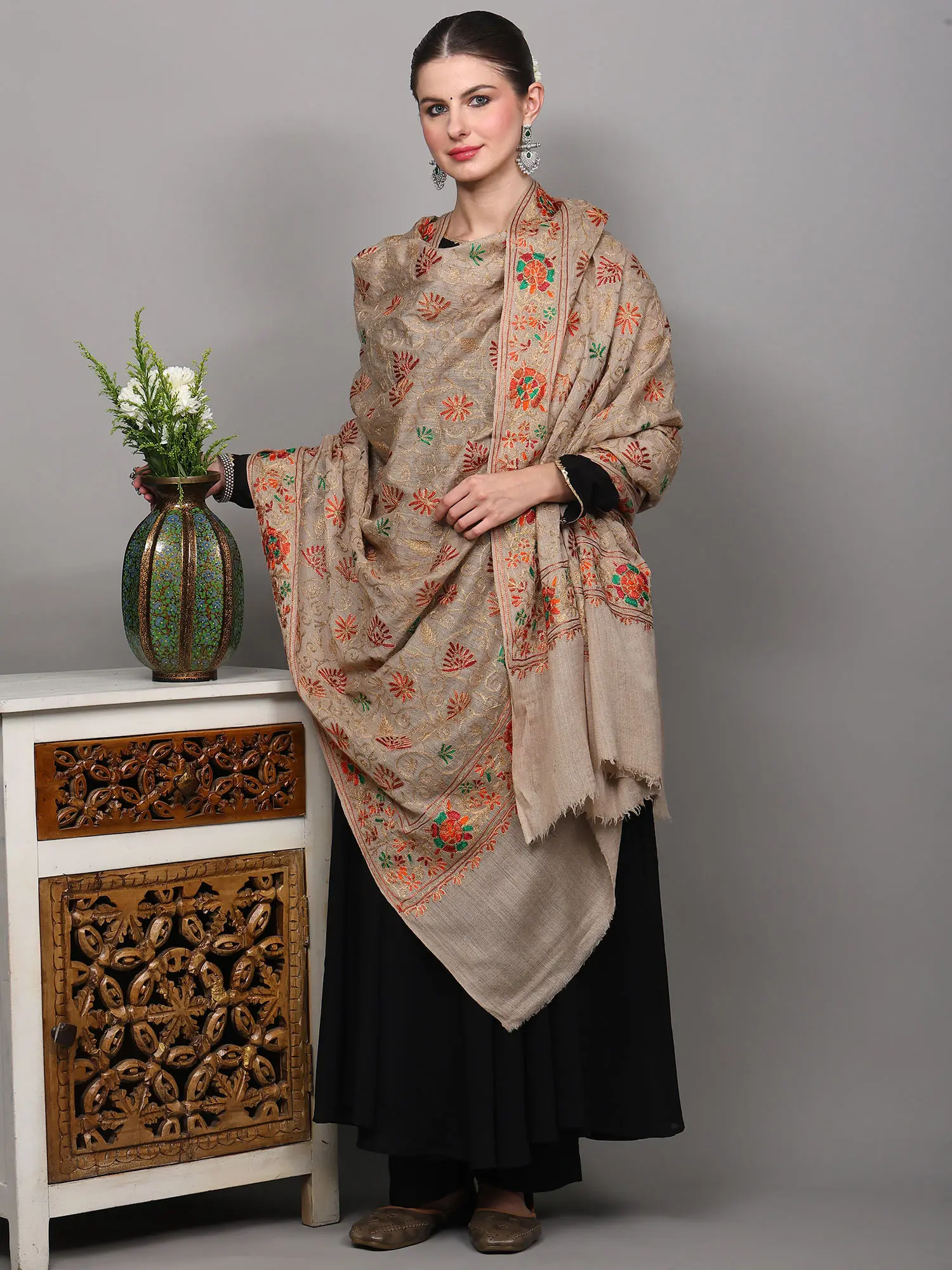 Pure Wool Shawl from Kashmir with Jaaldar Sozni Embroidery by Hand