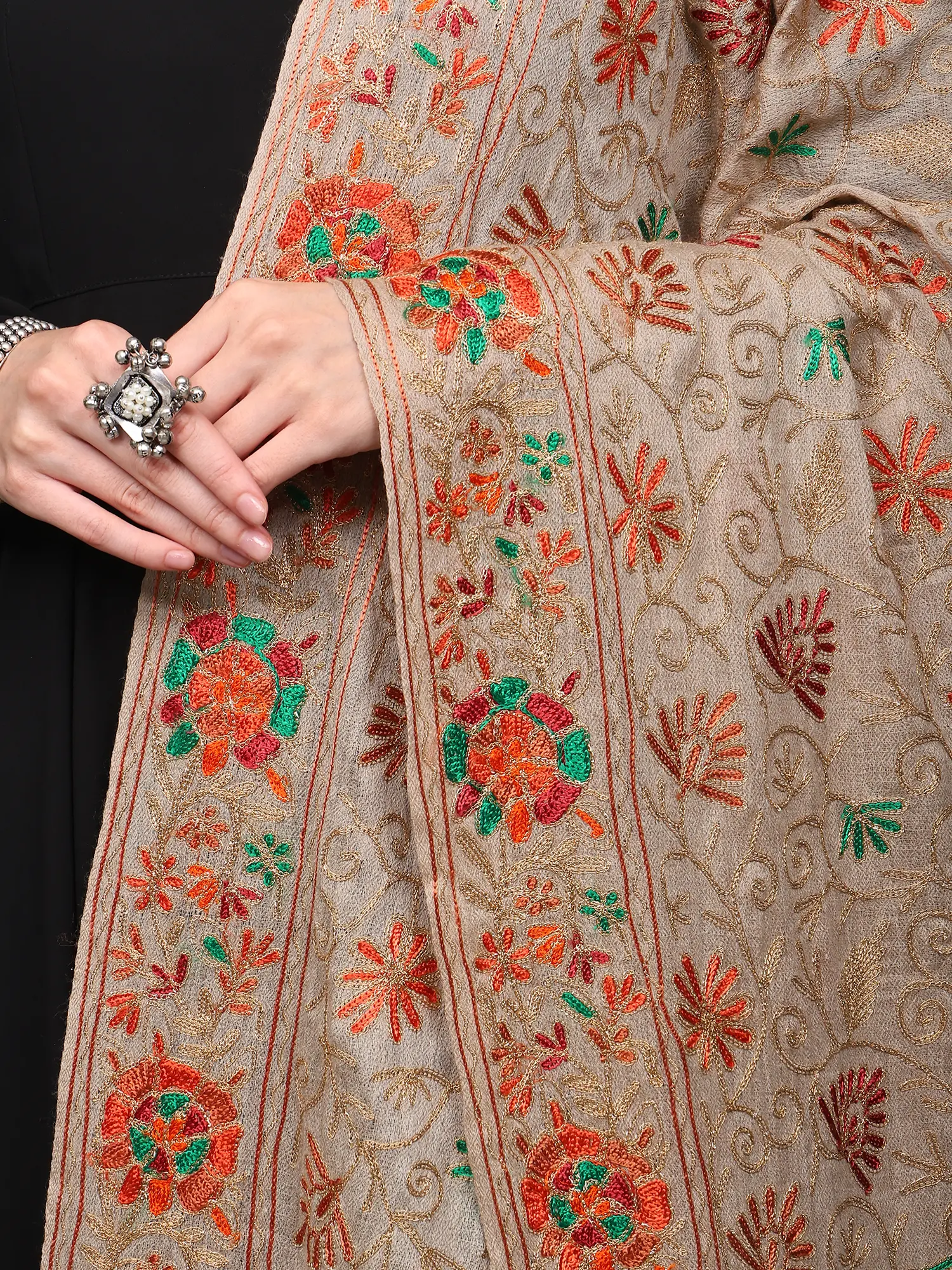 Pure Wool Shawl from Amritsar with Aari Embroidered Floral Vines