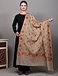 Pure Wool Shawl from Amritsar with Chain Stitch Embroidered Floral Jaal