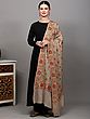 Antique-White Paisley Jaal Aari Hand-Embroidered Pure Wool Shawl from Kashmir