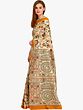 Complementing the all-over artistry is the striking temple border that frames this sari. This traditional border design, reminiscent of architectural elements, adds a touch of grandeur and completeness to the ensemble. The warm, earthy tone of the border provides a beautiful contrast to the intricate prints, anchoring the design and lending it a classic elegance. This border is not merely decorative; it is an integral part of the sari's aesthetic, enhancing its overall beauty and ensuring it remains a timeless piece.