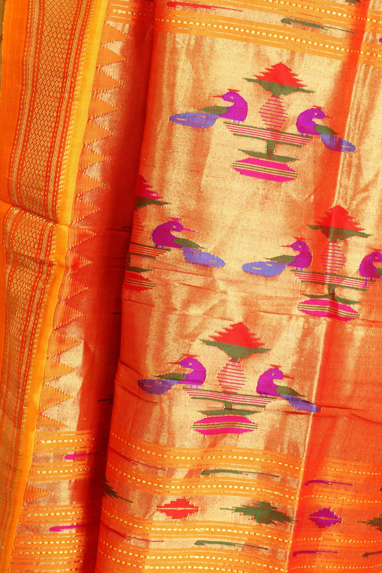 Paithani Silk Saree with Hand-Woven Peacocks on Border and Aanchal
