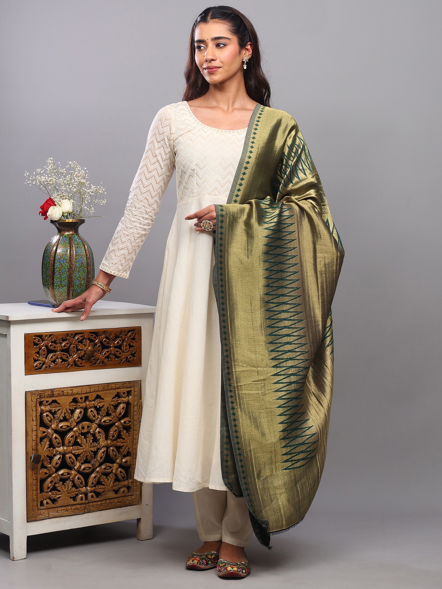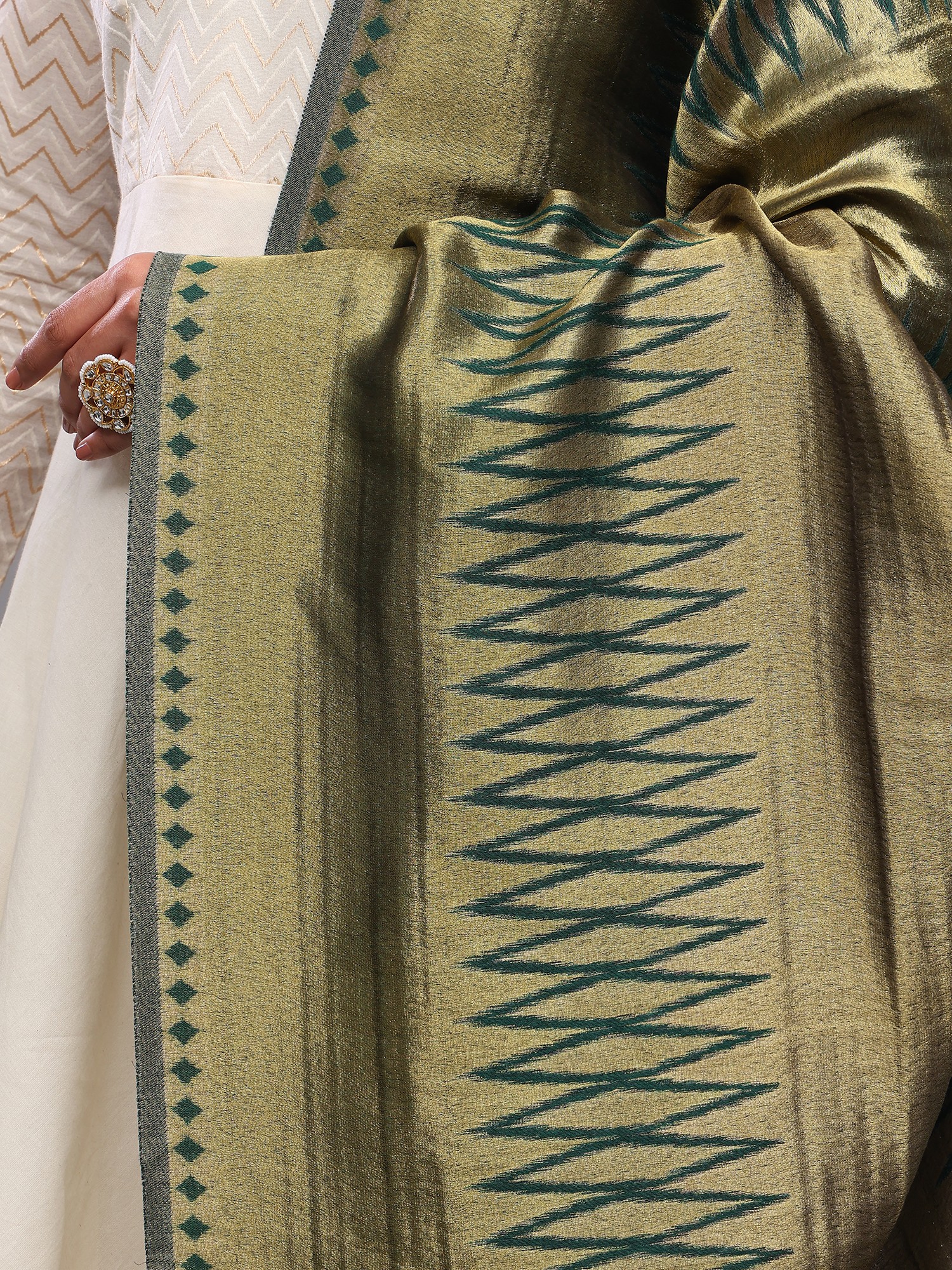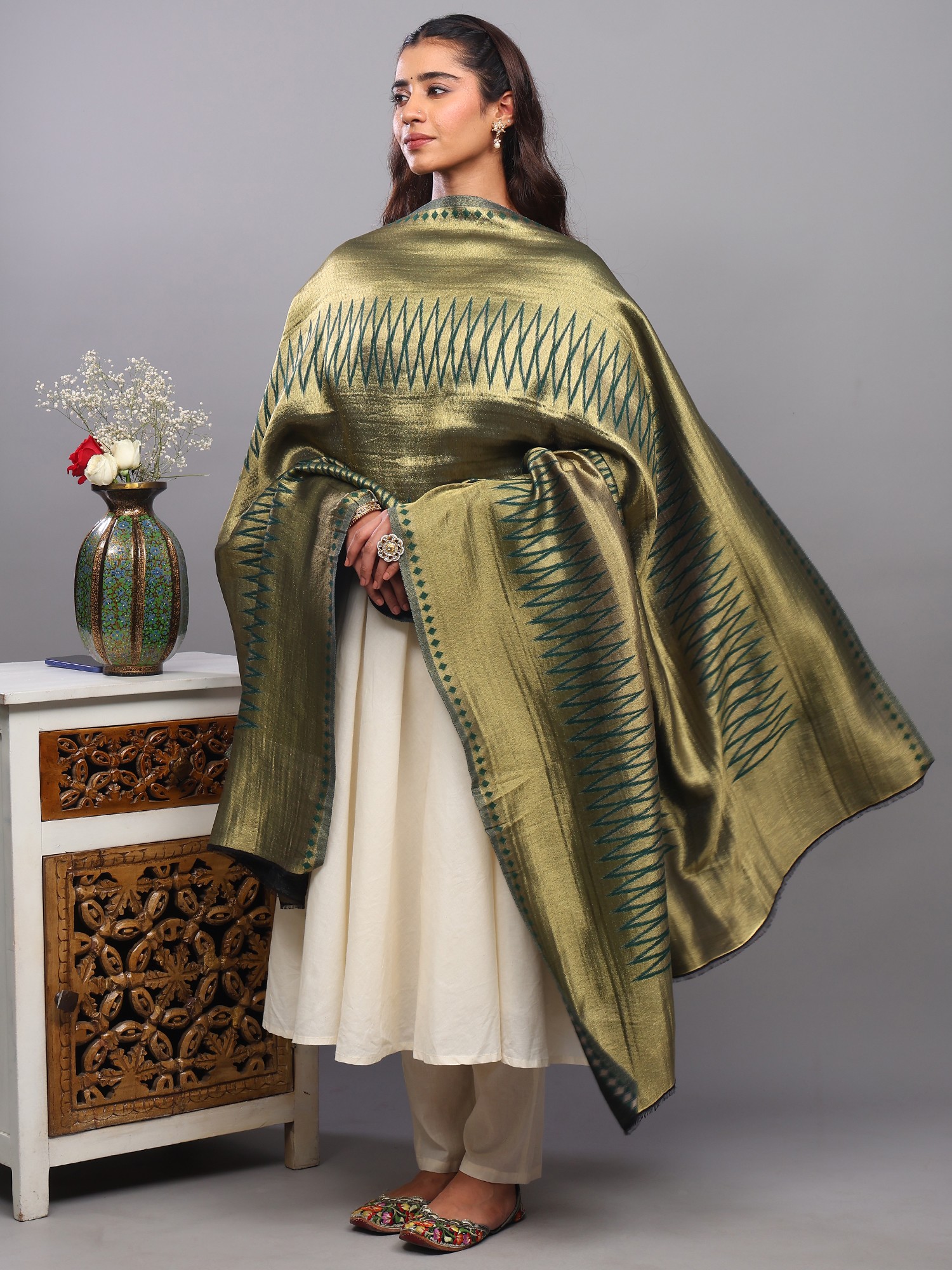 An Emblem of Elegance: The Amber-Green Shimmer Wool Shawl