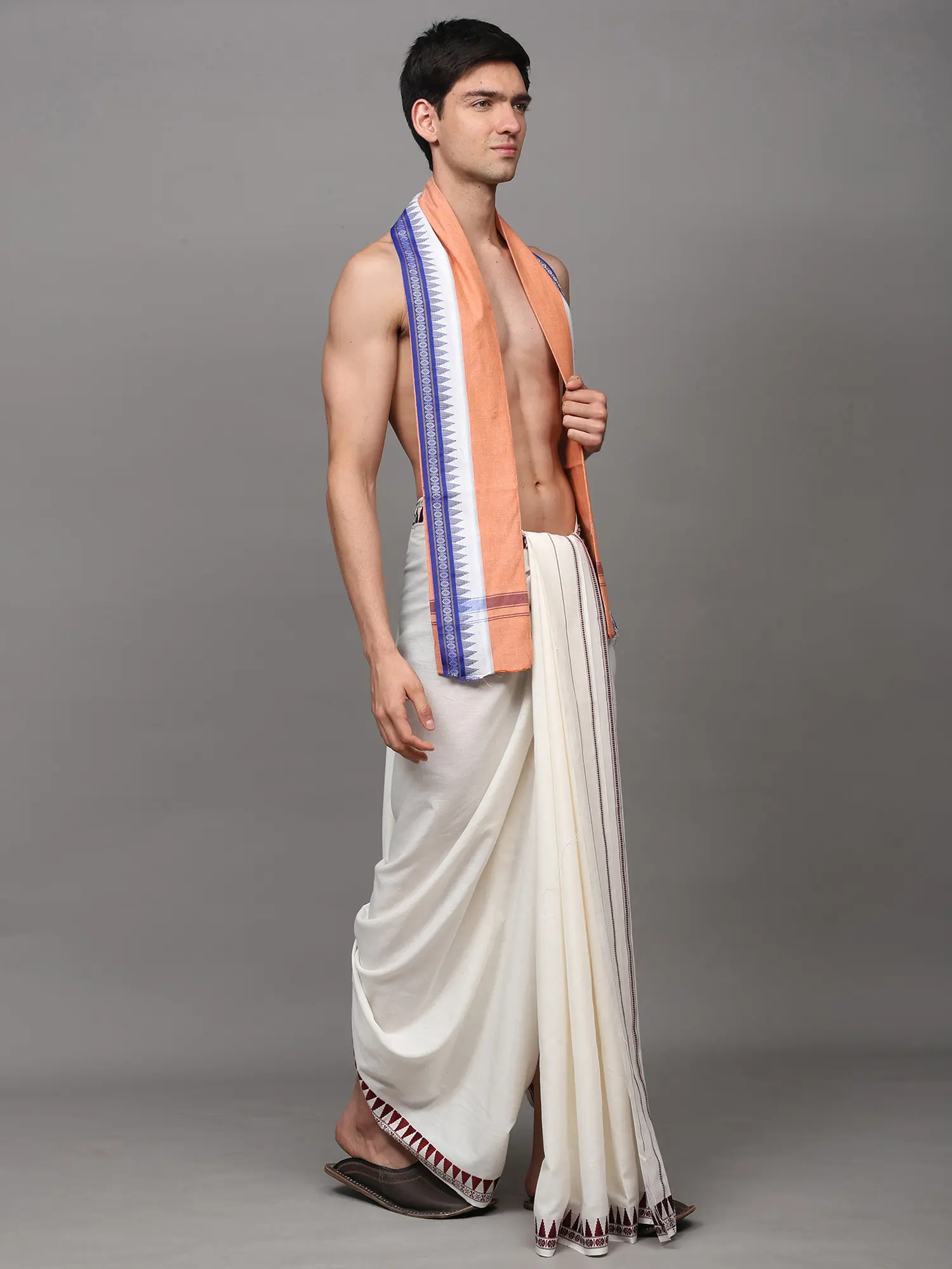 Ready to Wear Dhoti and Angavastram Set with Woven Temple Border