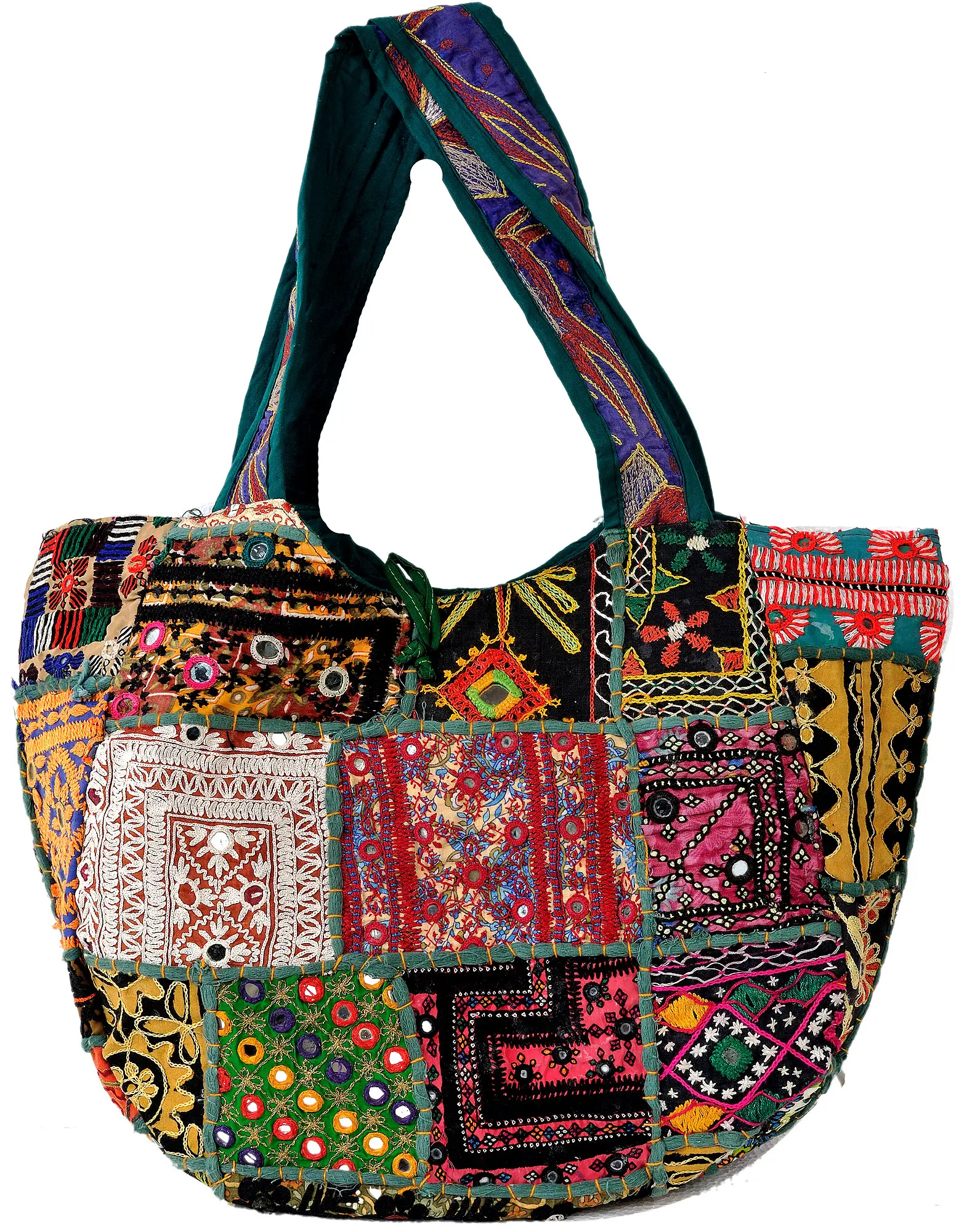 Multicolor Large Shopper Bag from Kutch with Embroidered Patchwork and Sequins