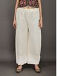Antique-White Cotton Lucknowi Palazzo Pants With Chikankari Work