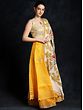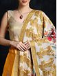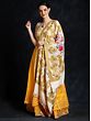 Antique-White and Orange Saree with Printed Flowers and Aari-Embroidery