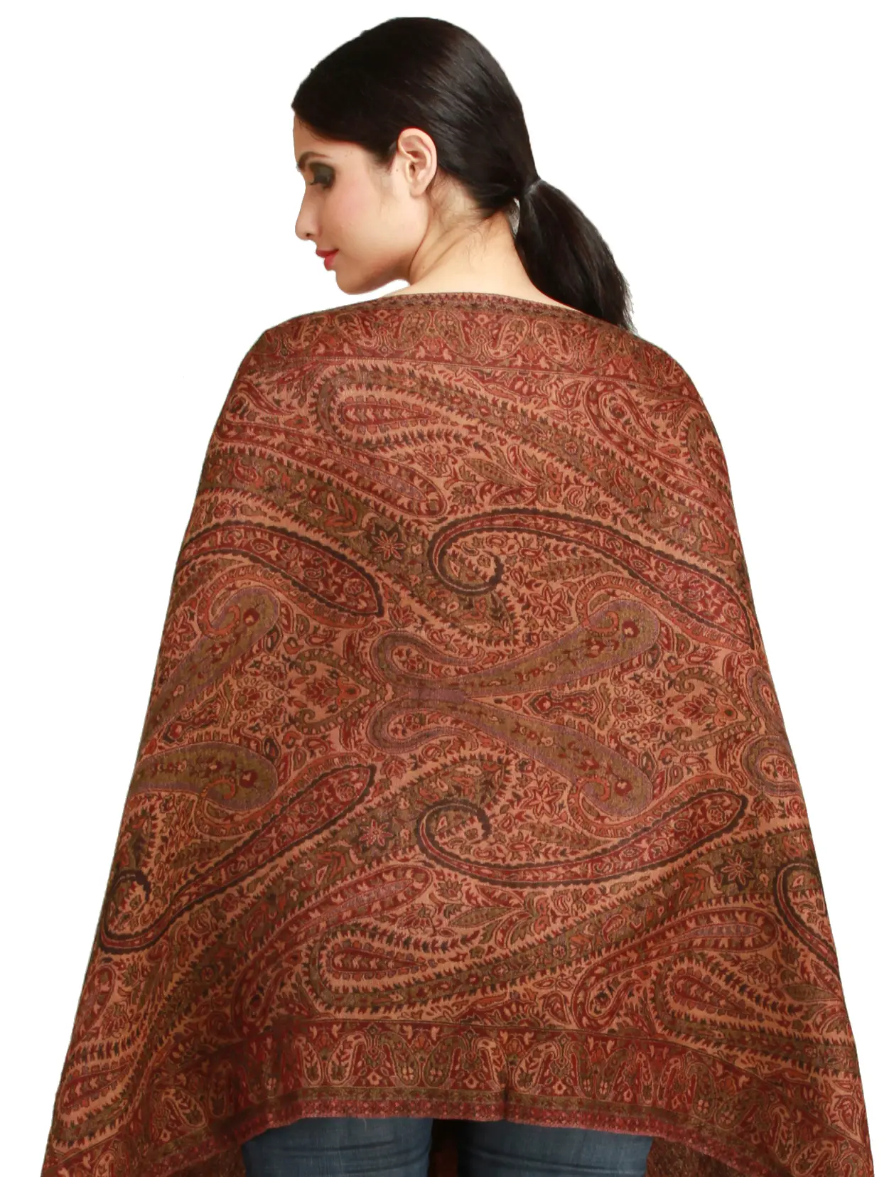 Kashmiri Stole with Aari Hand-Embroidered Paisleys All-Over