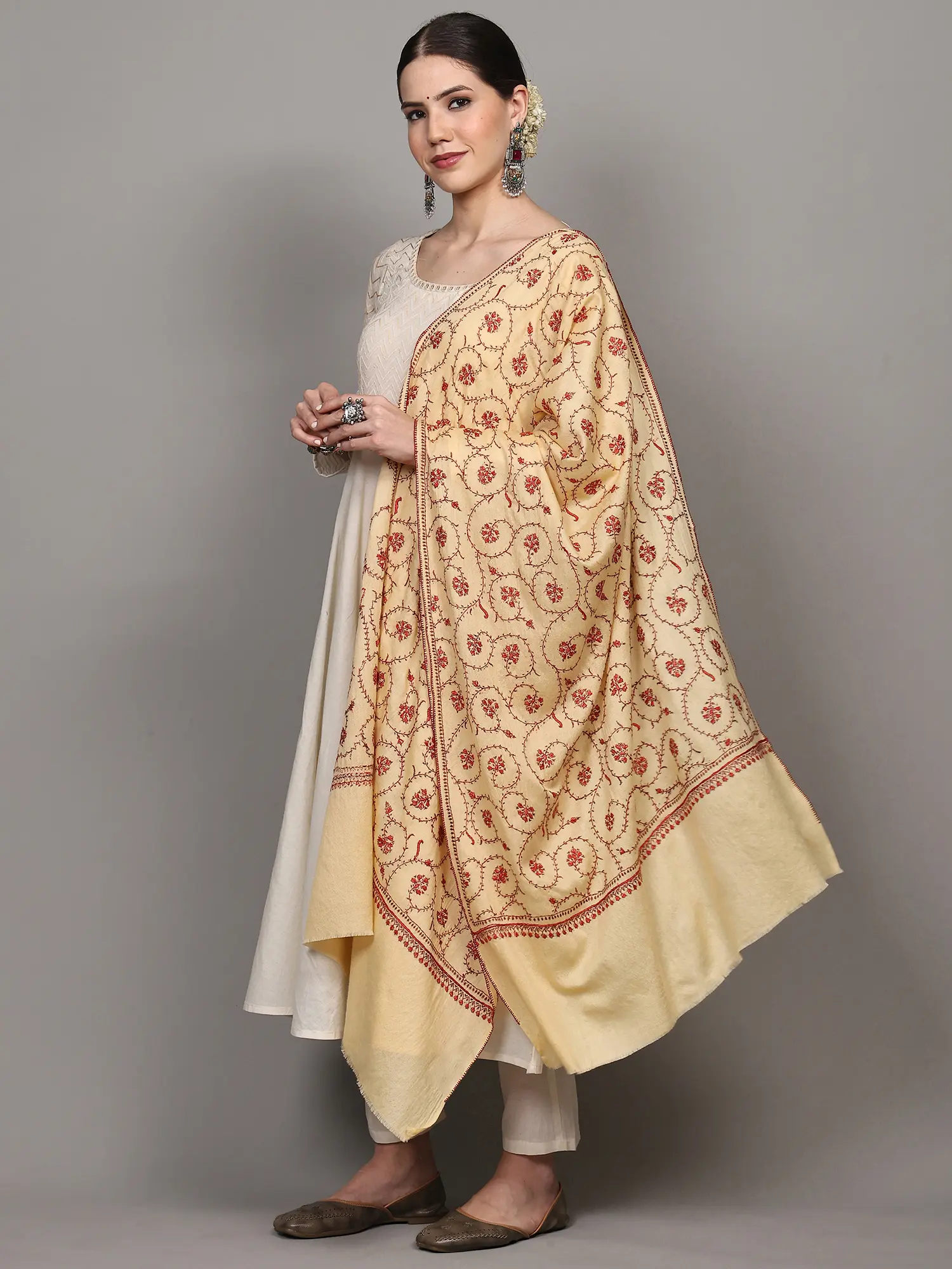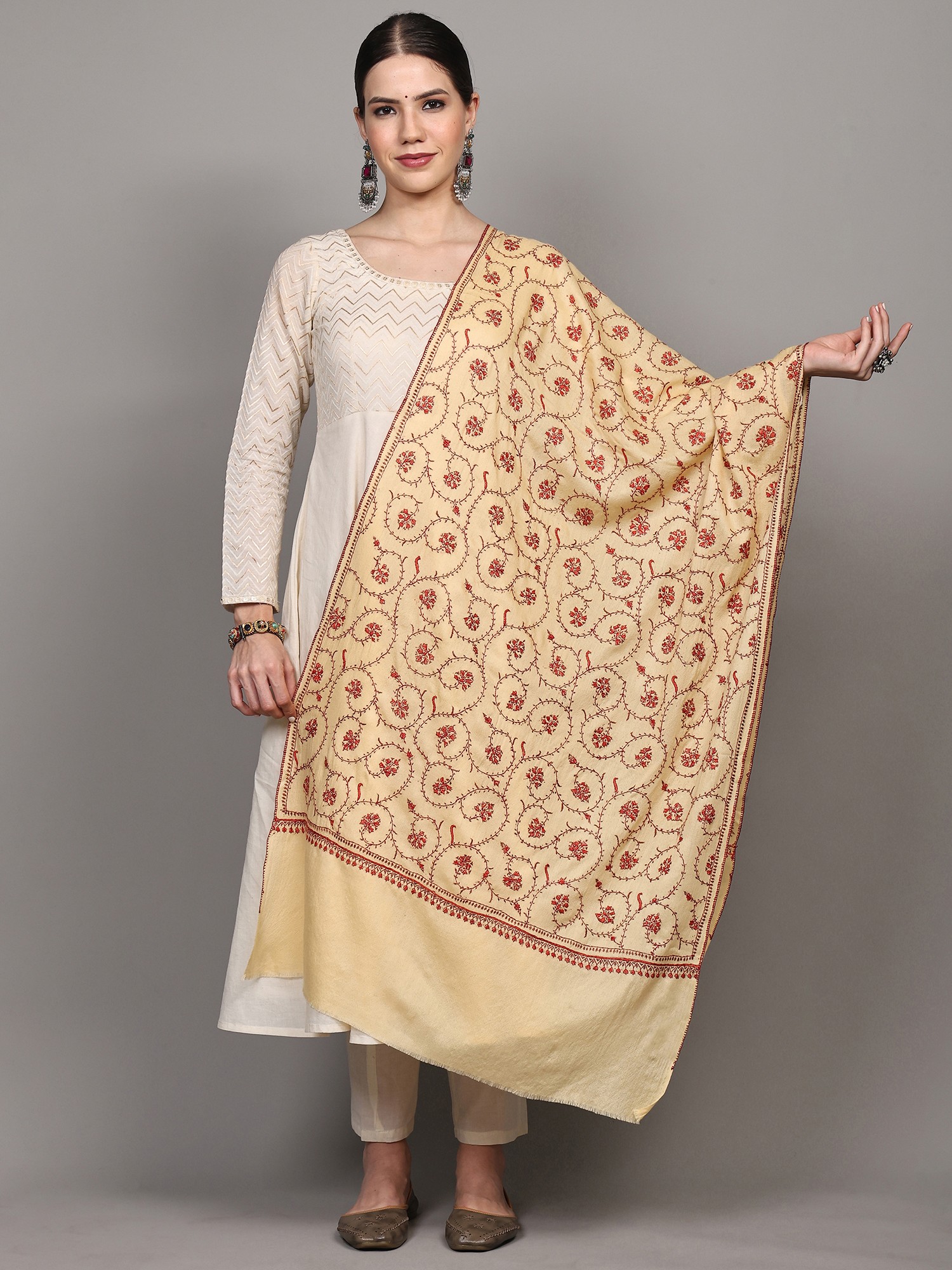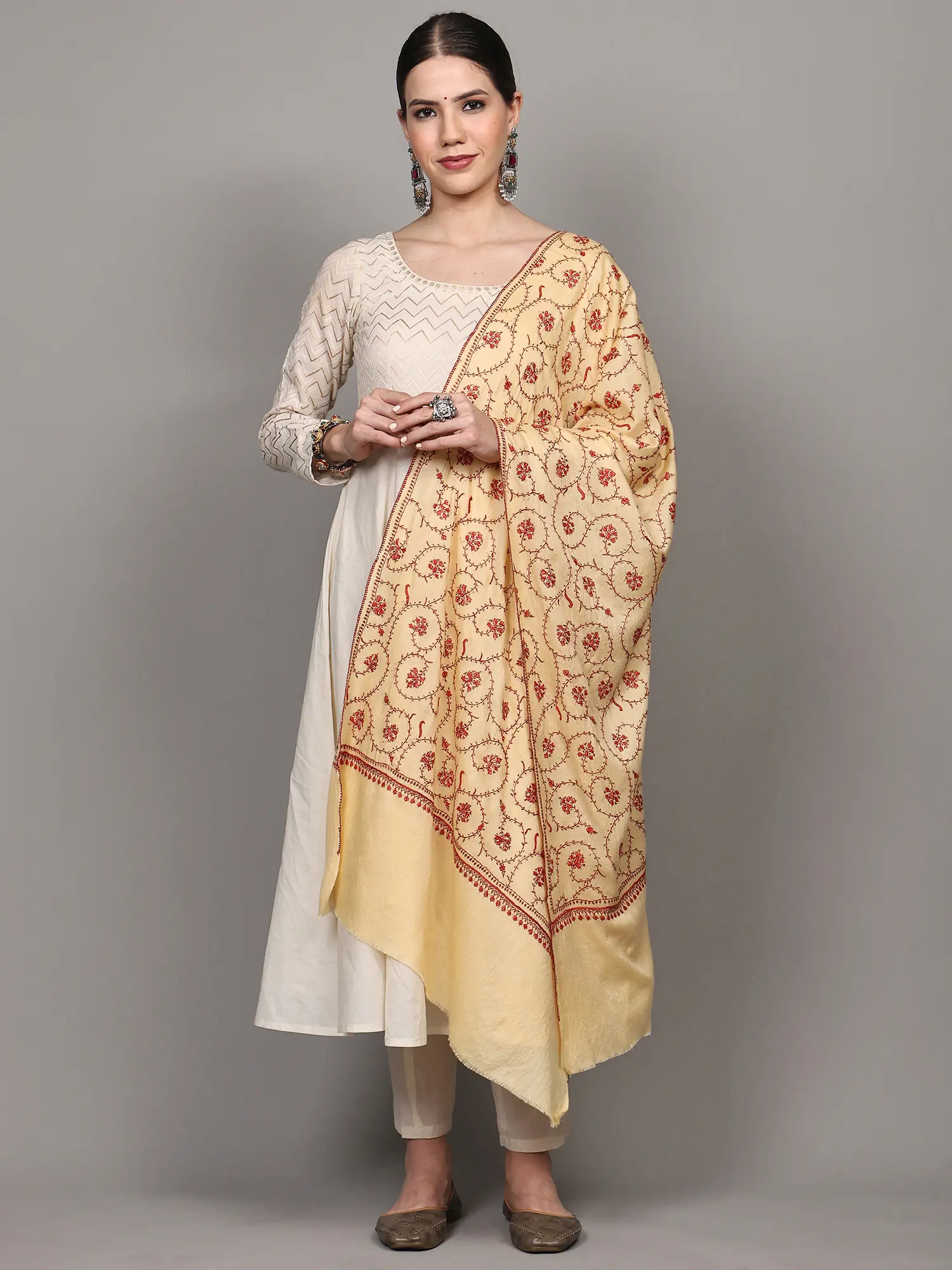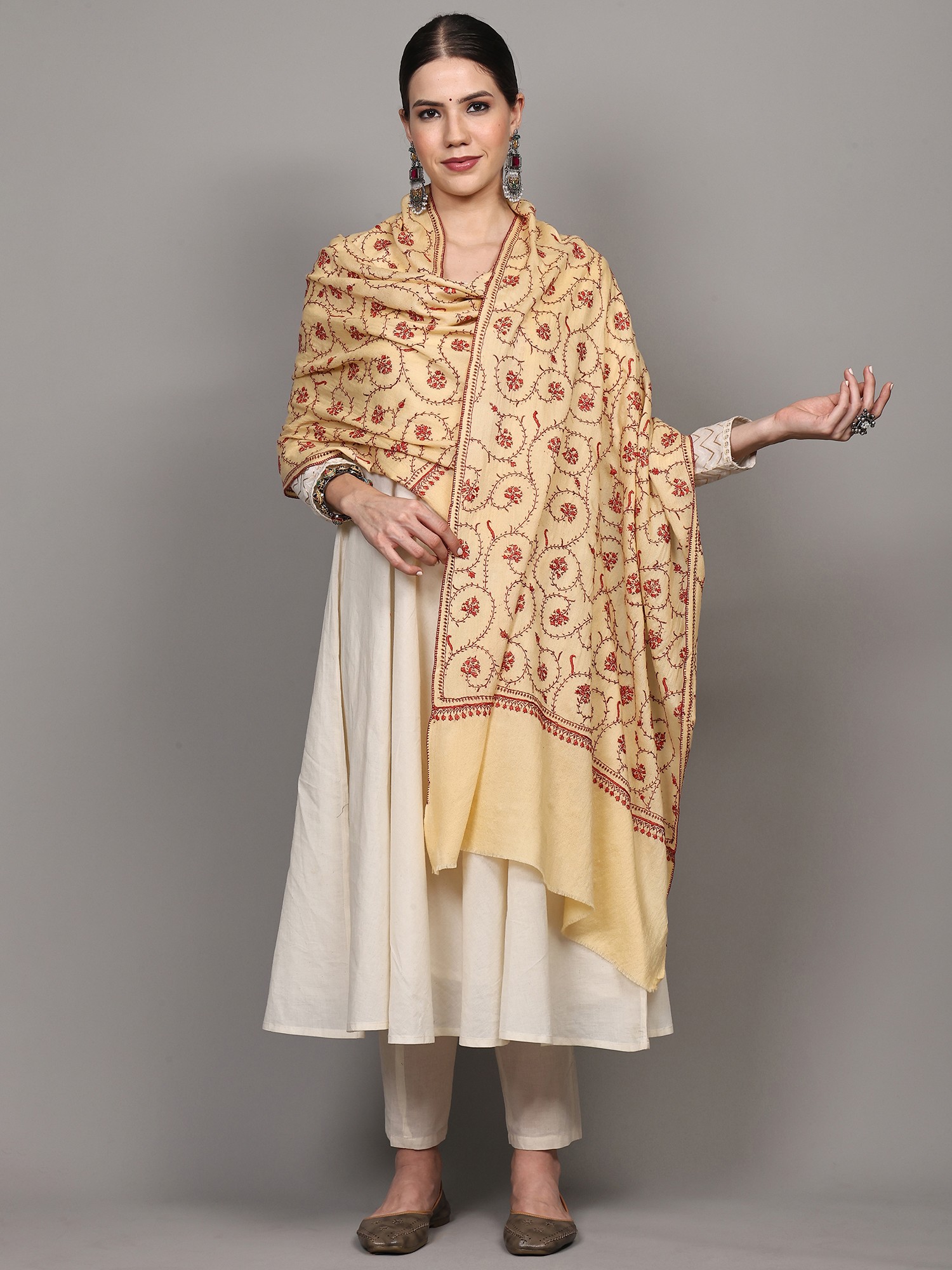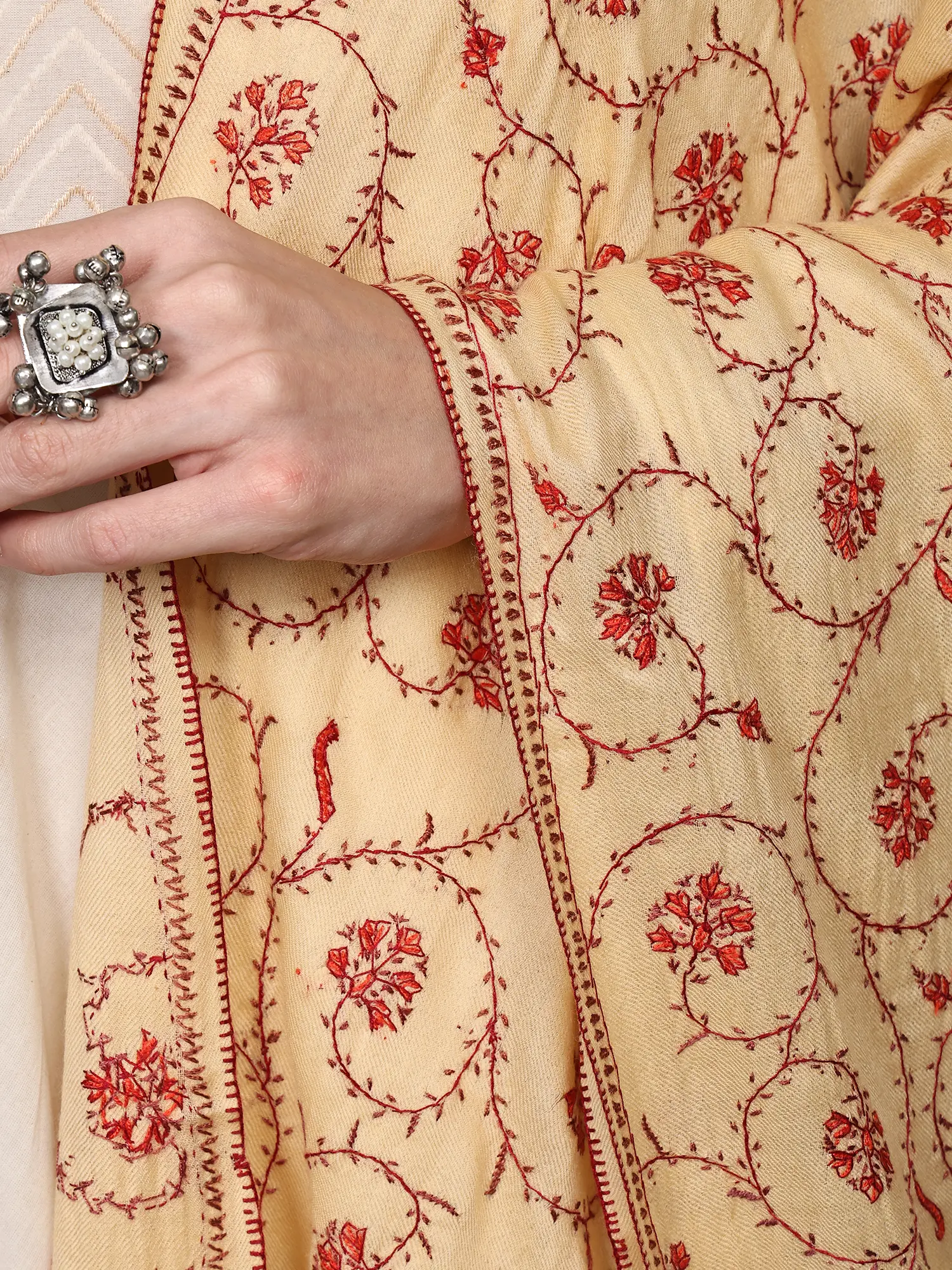 Pure Pashmina Stole with Sozni Hand-Embroidered Floral Jaal from Kashmir