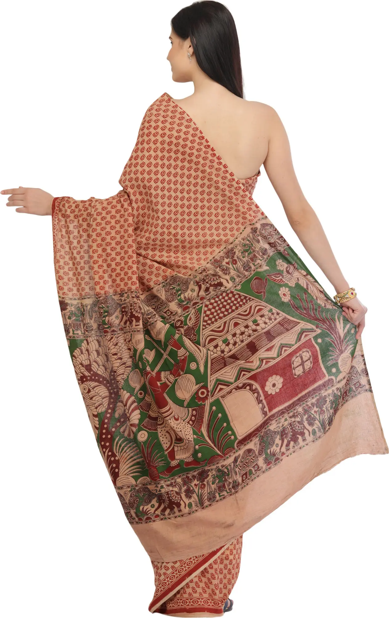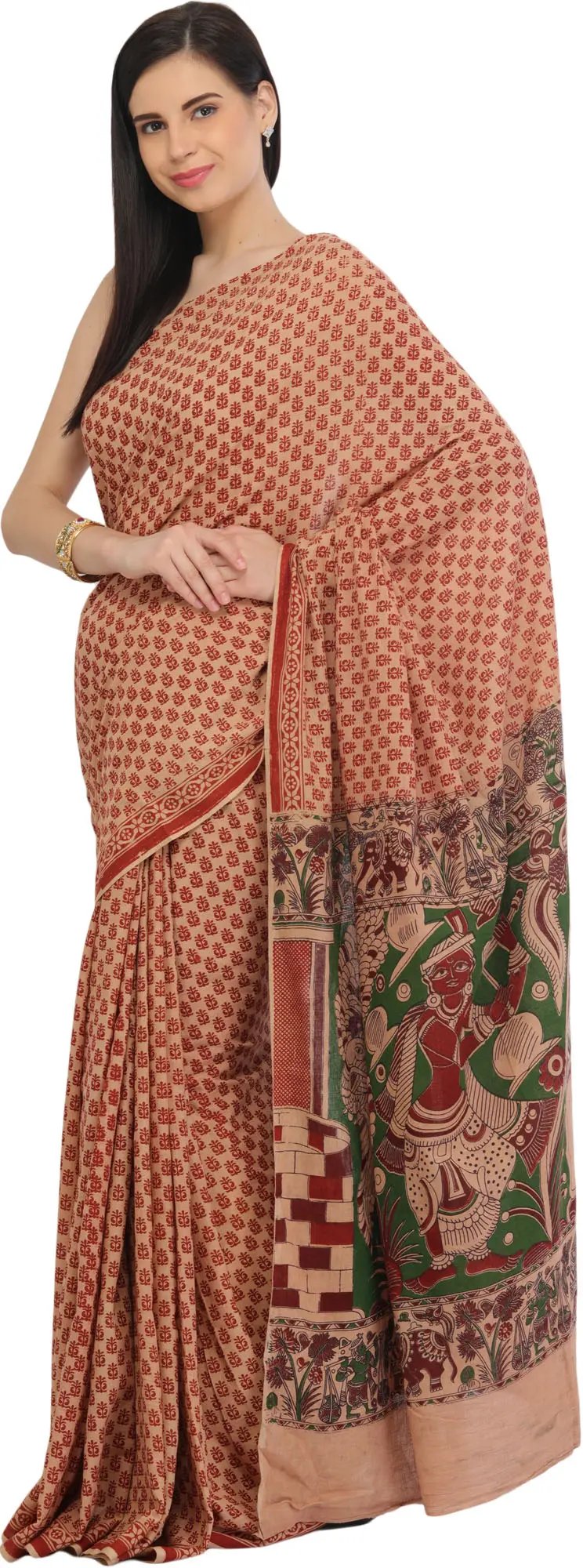 Kalamkari Dupatta with Pen Art Hand-Painted Kathakali Dancing Ladies