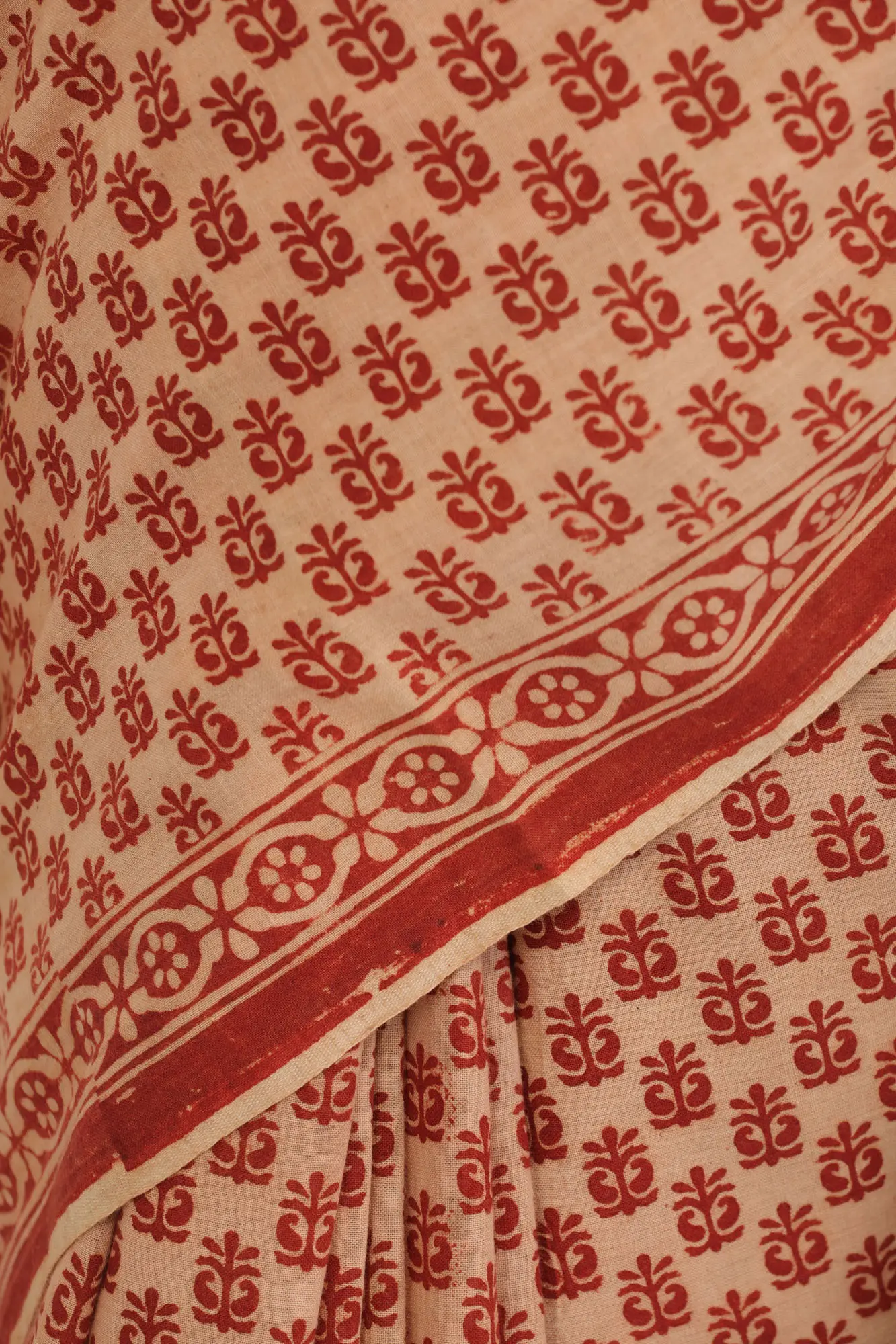 White-Swan Kalamkari Dupatta from Telangana with Block-Printed Flowers and Zari Border