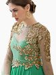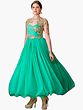 Aqua-Green Designer Anarkali Suit with Floral-Embroidery in Zari Thread