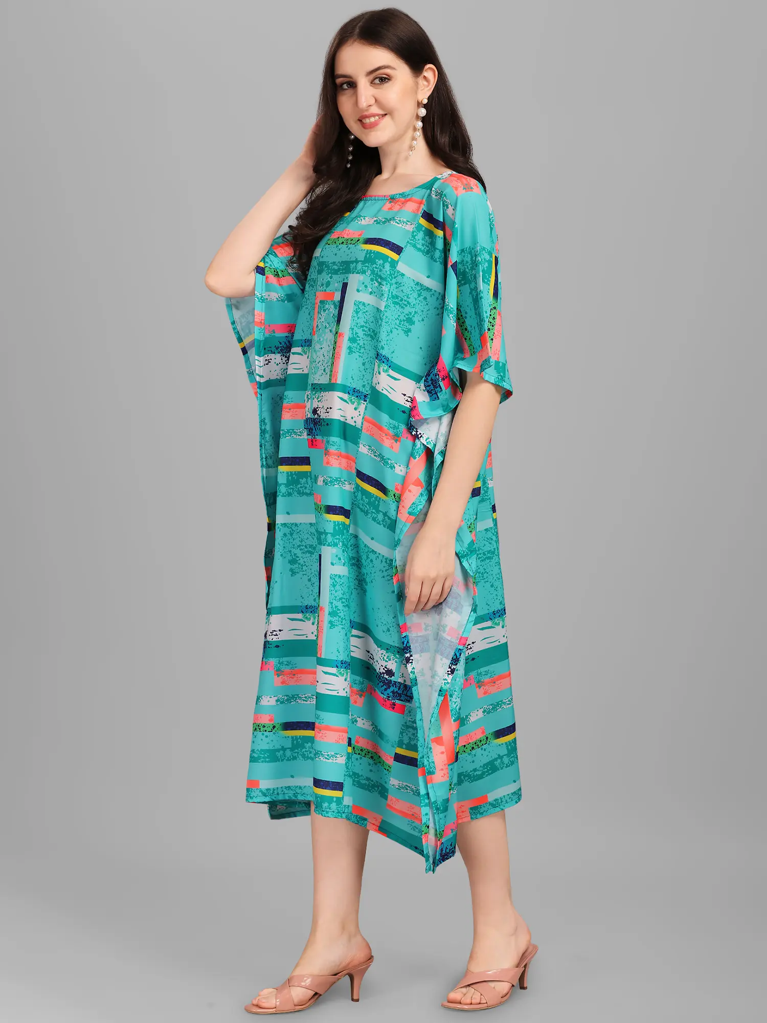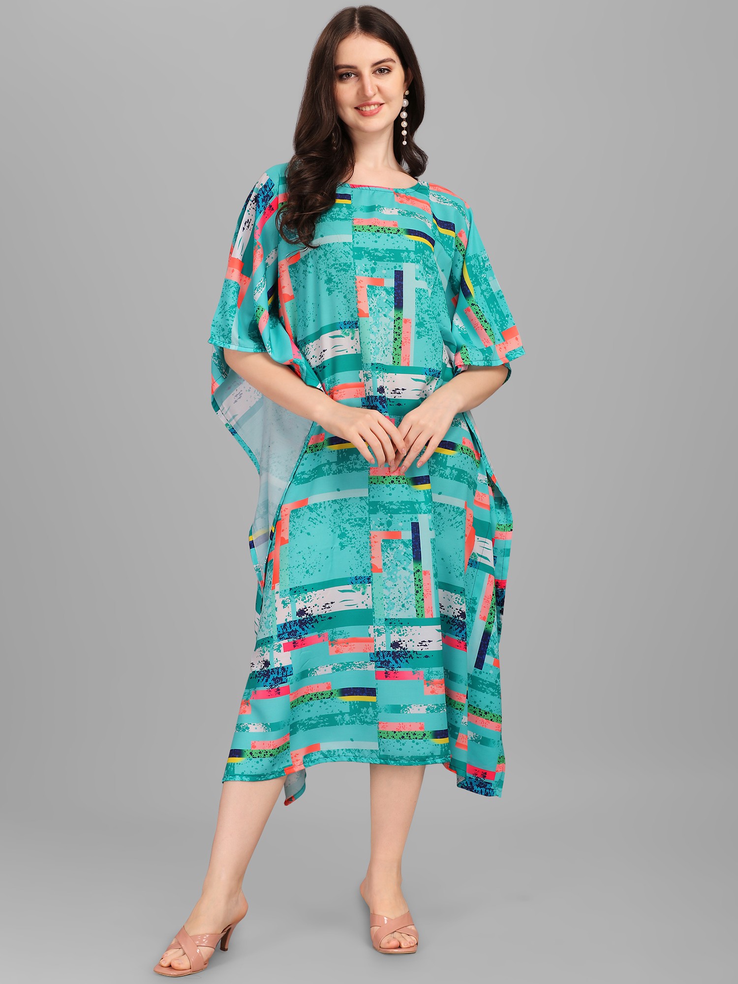 Black-Onyx Rayon Midi Kaftan with Printed Rectangle Shapes